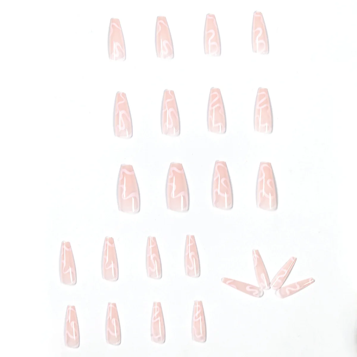 24 шт. простые розовые оборки длинные балетное гроб накладные ногти беспроводные Маникюр Nail Art инструменты Пресс на ногтях, полного покрытия, накладные ногти с клеем