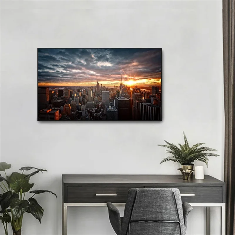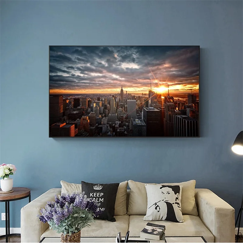 Пейзаж Нью-Йорка, Художественная печать на холсте, картина Манхэттен, город, закат, вид постера, Настенная картина для гостиной, домашний декор