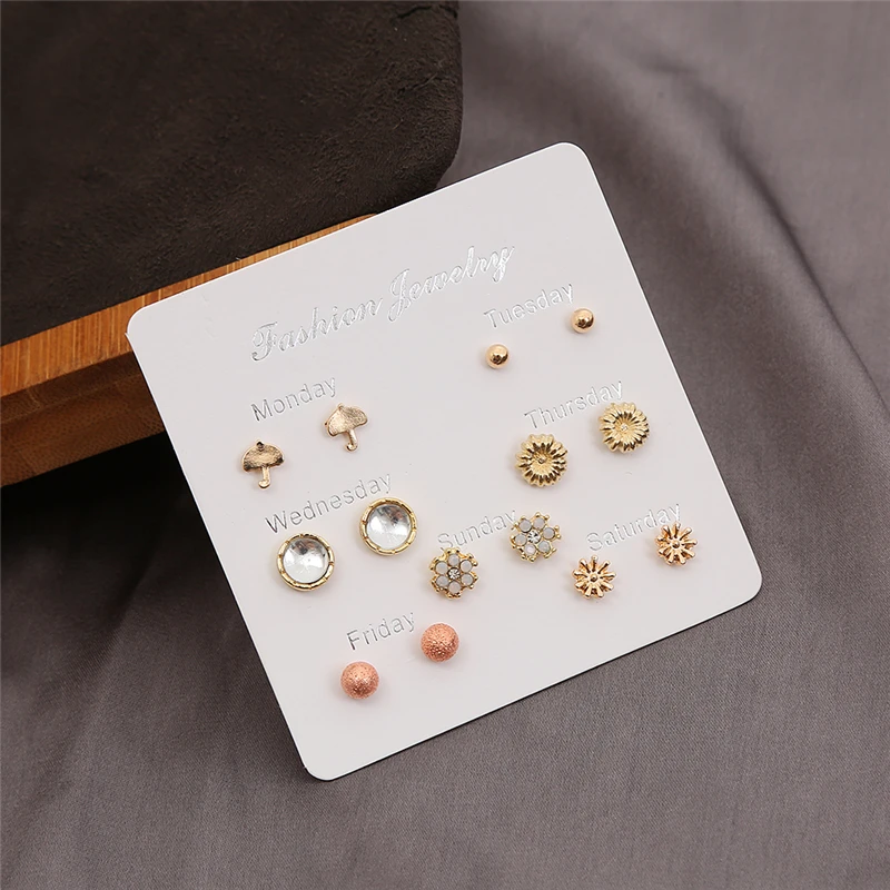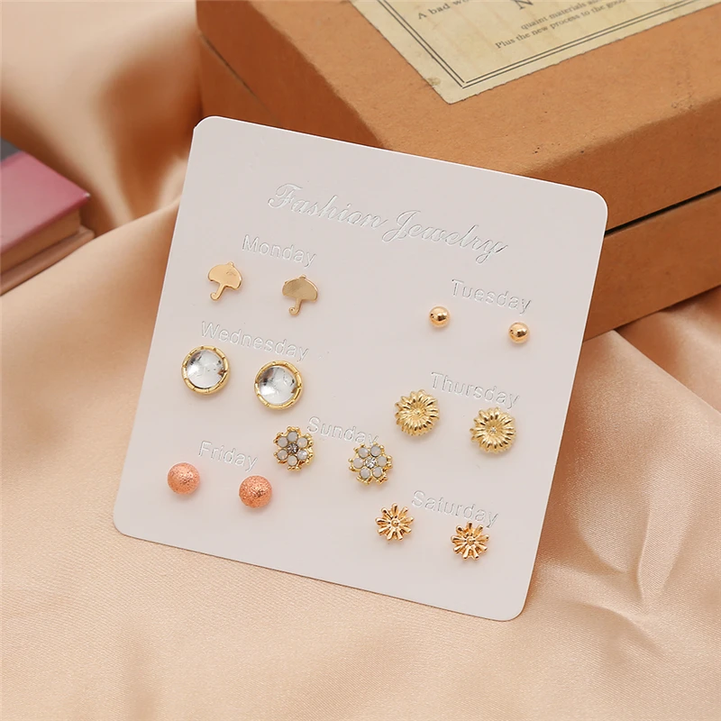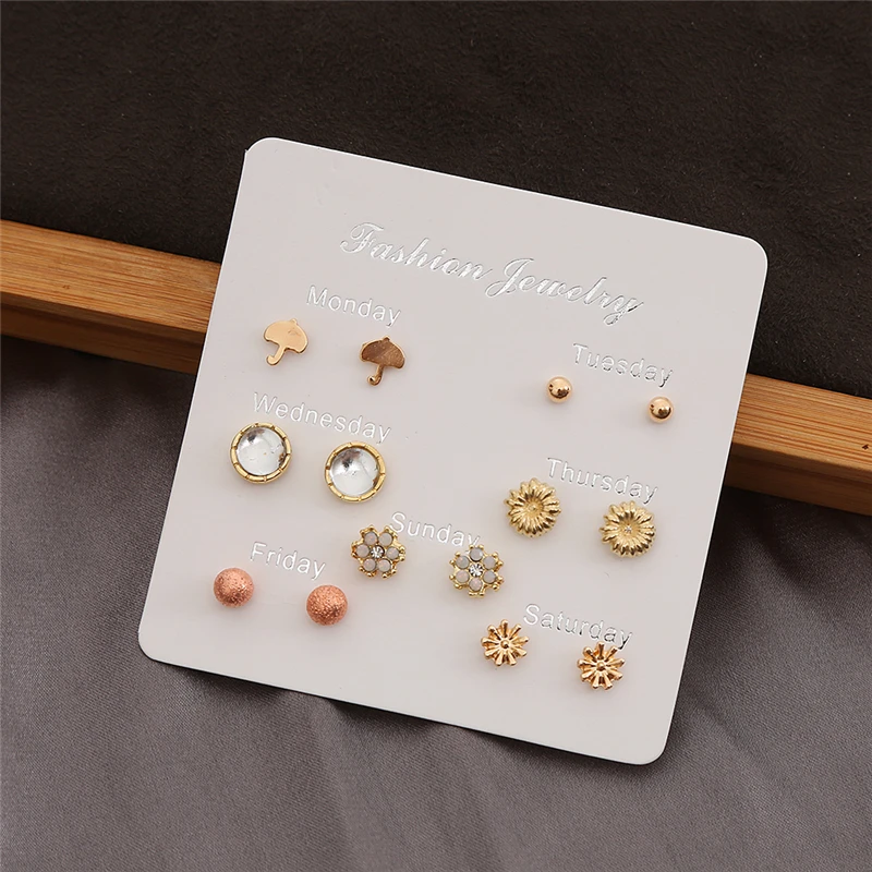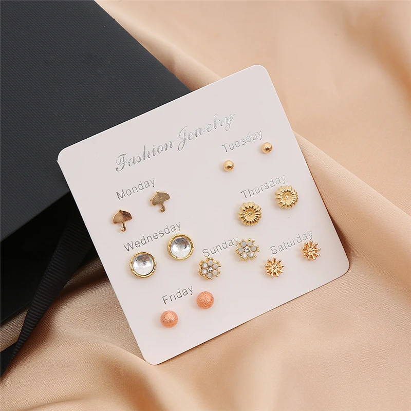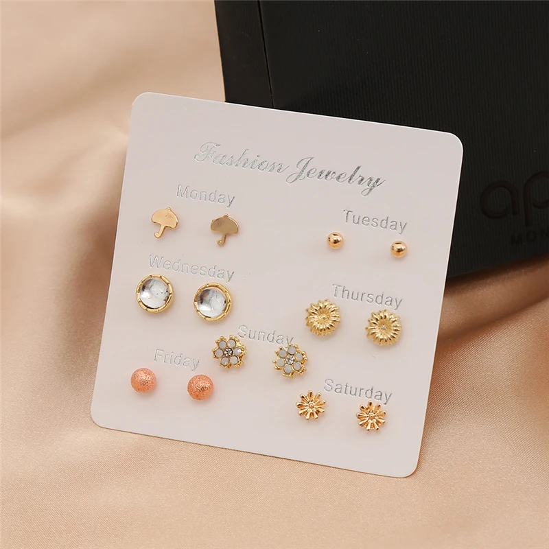 7 пар одна неделя серьги для женщин 2021 новые милые хрустальные серьги с цветами