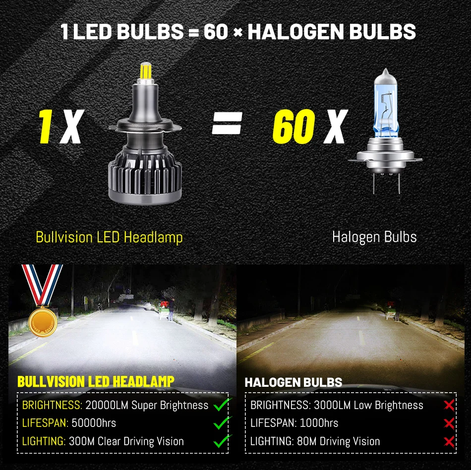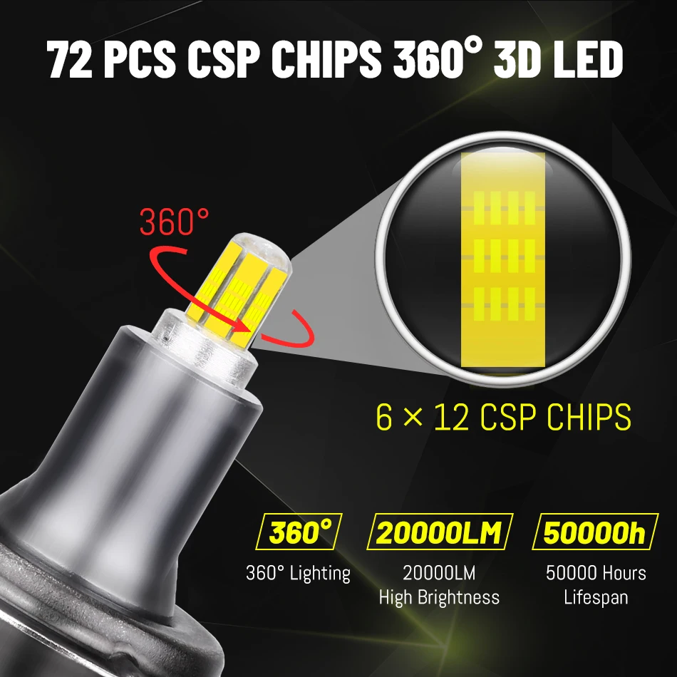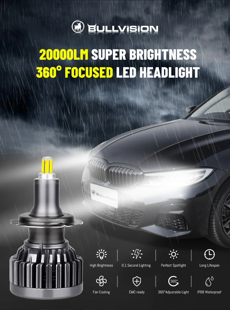 Светодиодные фары BULLVISION H7, 9005 лм, CSP-чип H1 H11 H8 H9 9006 HB3 360 HB4 3D, градусов, освещение, дальнийближний свет с Драйвером
