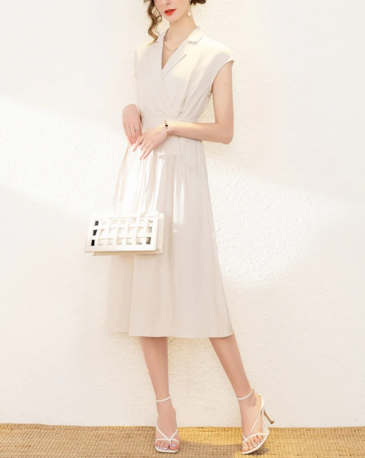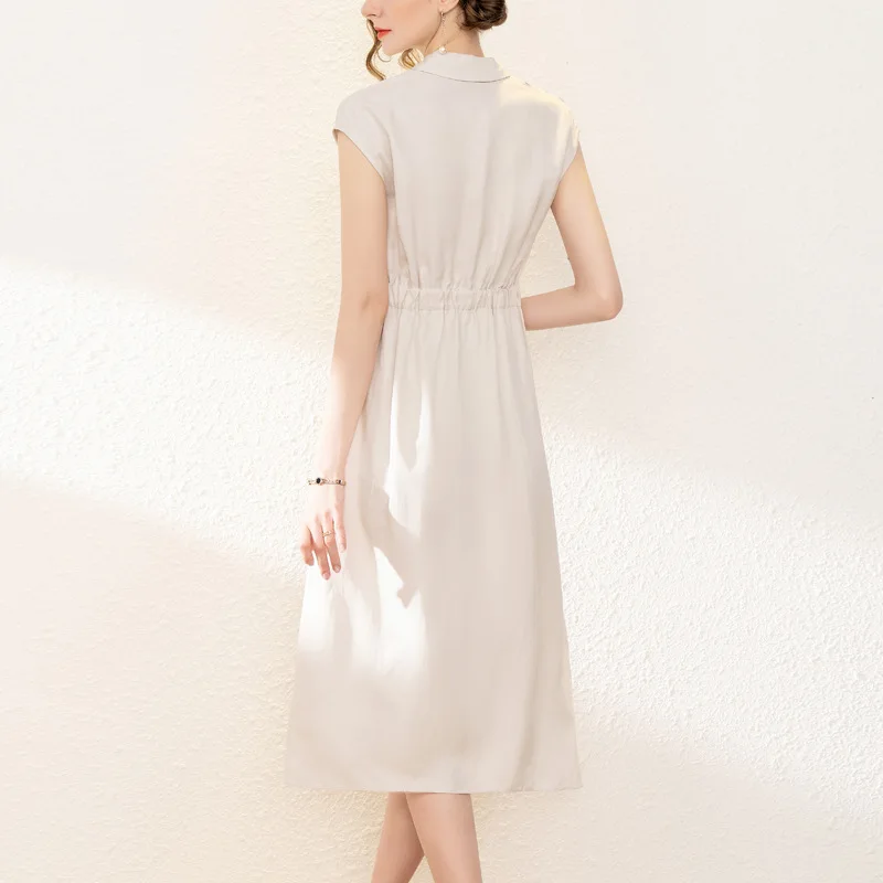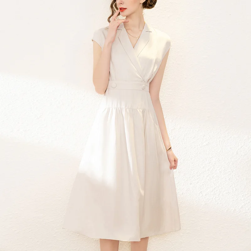 Название:Gezelligheid платья для женщин 2021 Лето Новая мода элегантное тонкое женское уличное Роскошное однотонное Плиссированное хлопковое льняное платье миди
