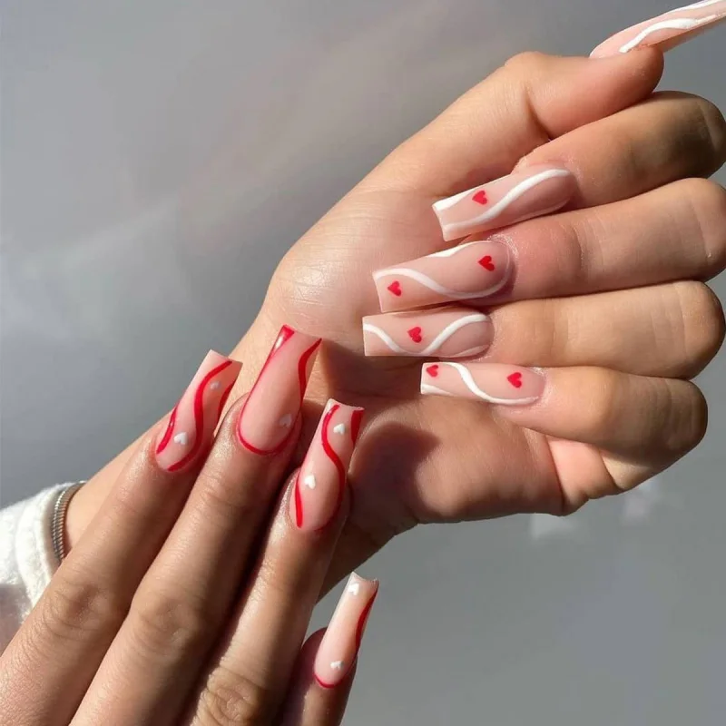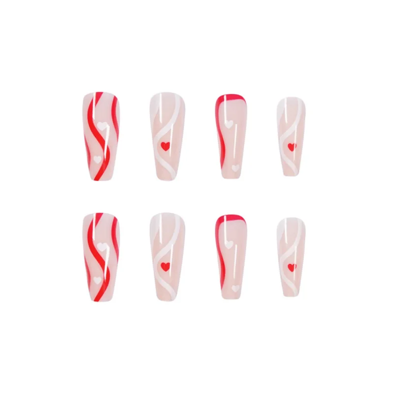 Накладные ногти 24 шт.компл., сверхдлинные красные и белые линии, и...