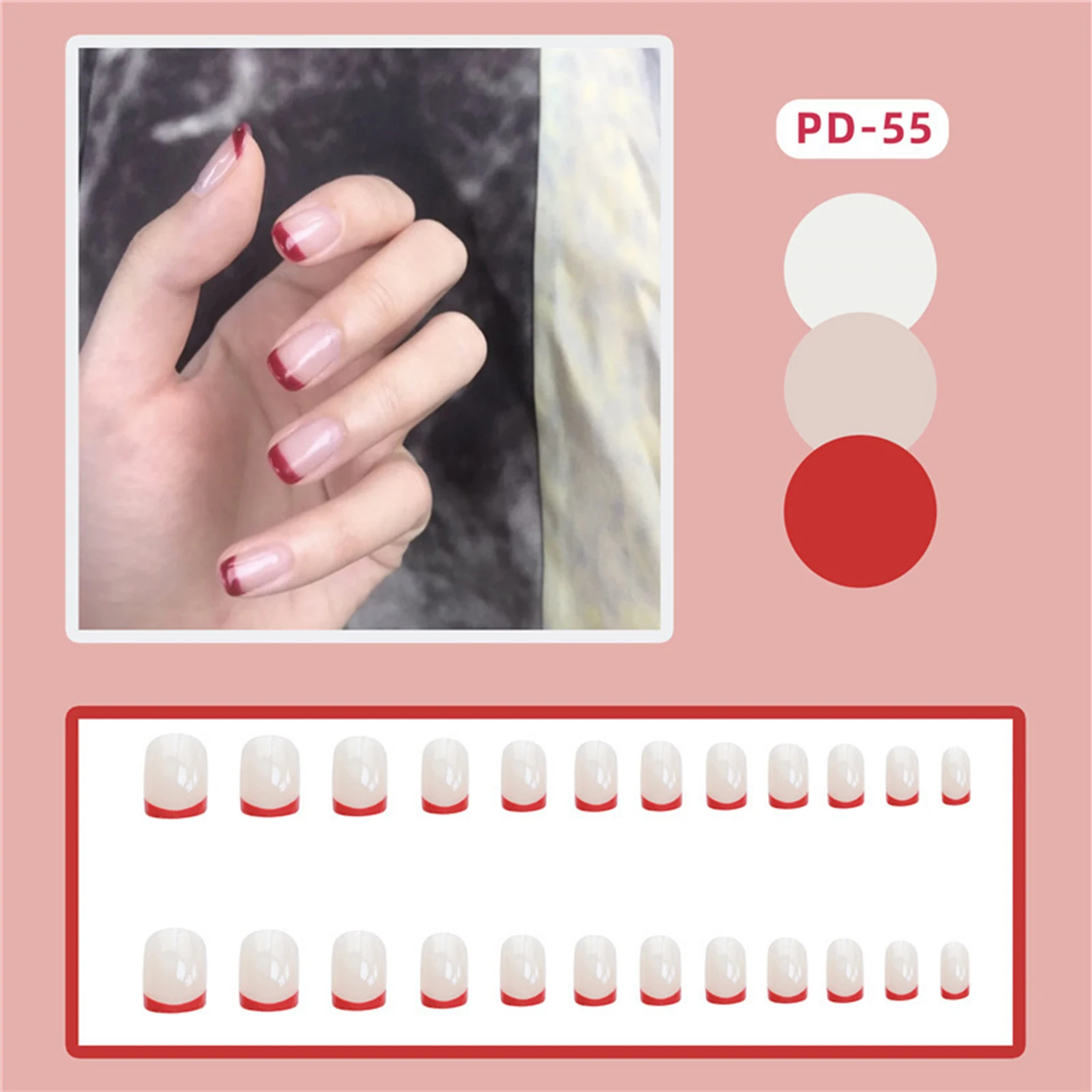 24 шт розовая линия французские накладные ногти короткая квадратная...