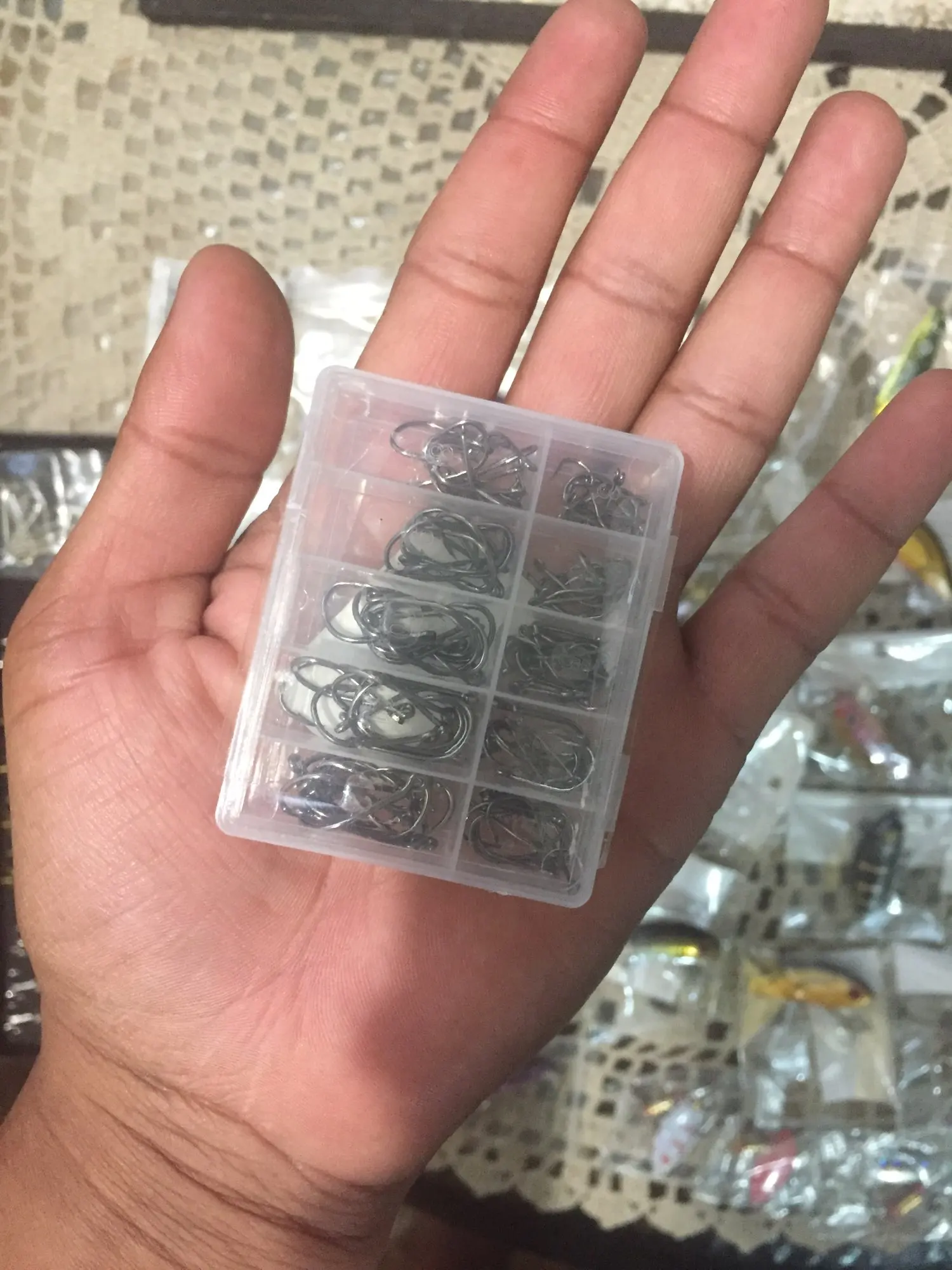 крючков одного номера по 6-7 штук. всего не более 70. остальное на любителя.