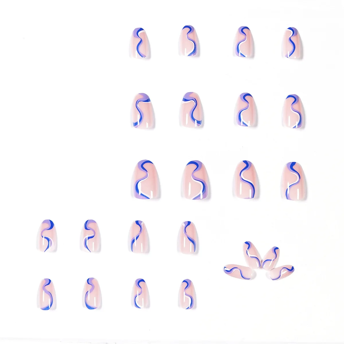 24 шт. синие и белые волнистые линии съемные Длинные накладные ногт...