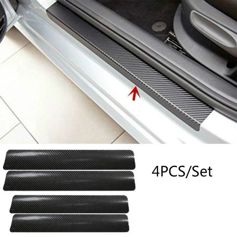 4 шт., 60 см x 6,8 см, автомобильная наклейка s, универсальная Накладка на порог, наклейка на дверь из углеродного волокна с защитой от царапин, автомобильные аксессуары, Стайлинг
