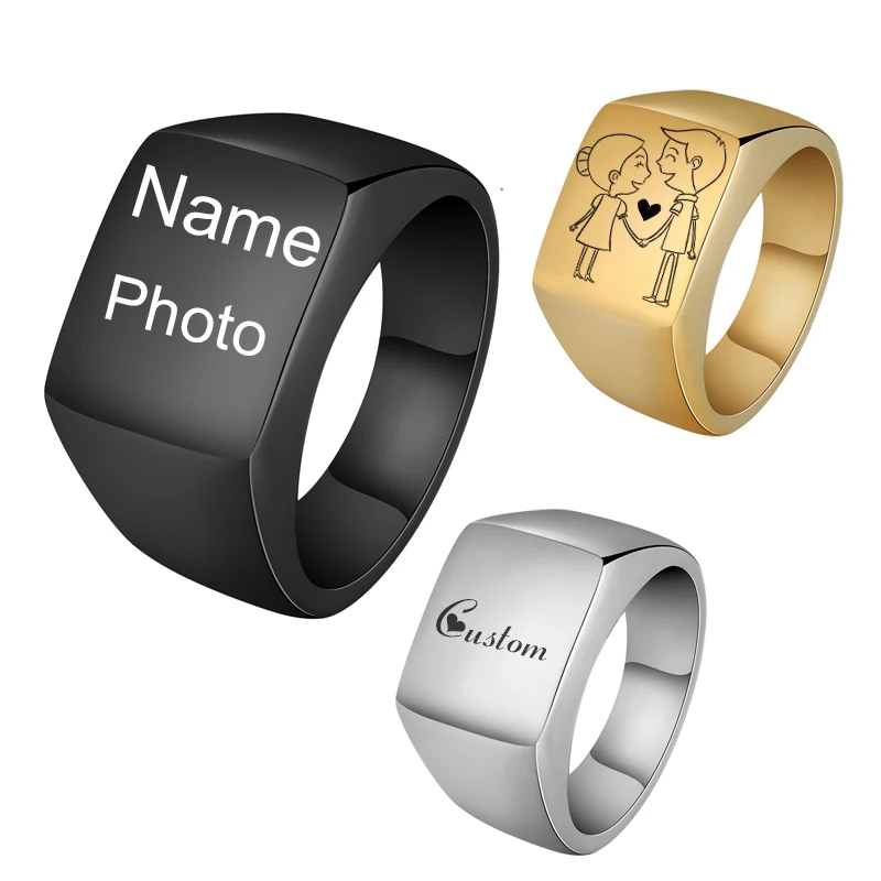 Высококачественные кольца с Выгравированными именами и фотографиями, из нержавеющей стали