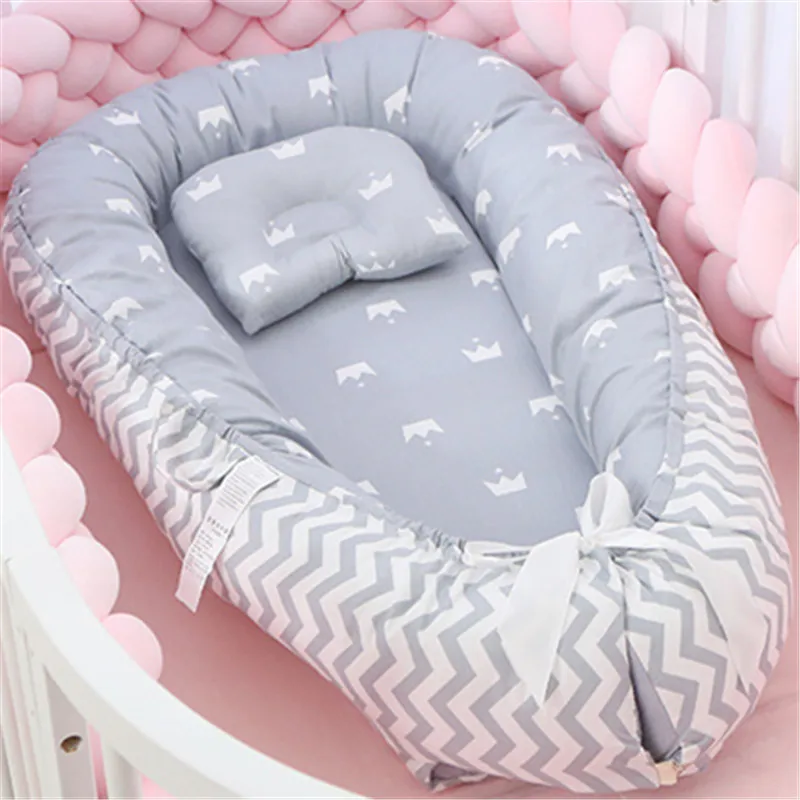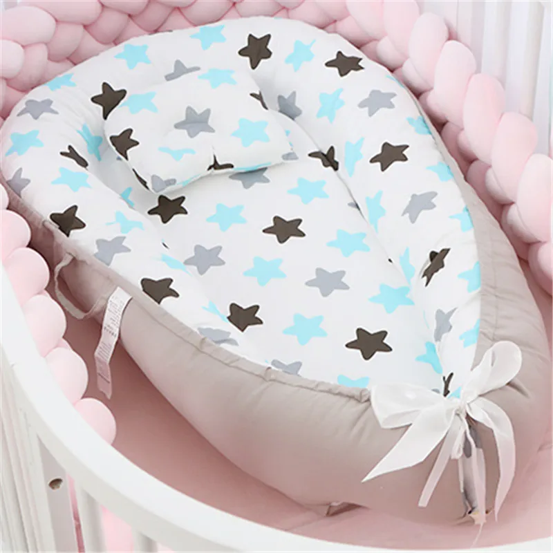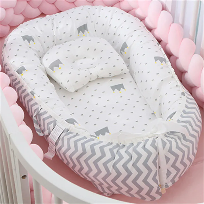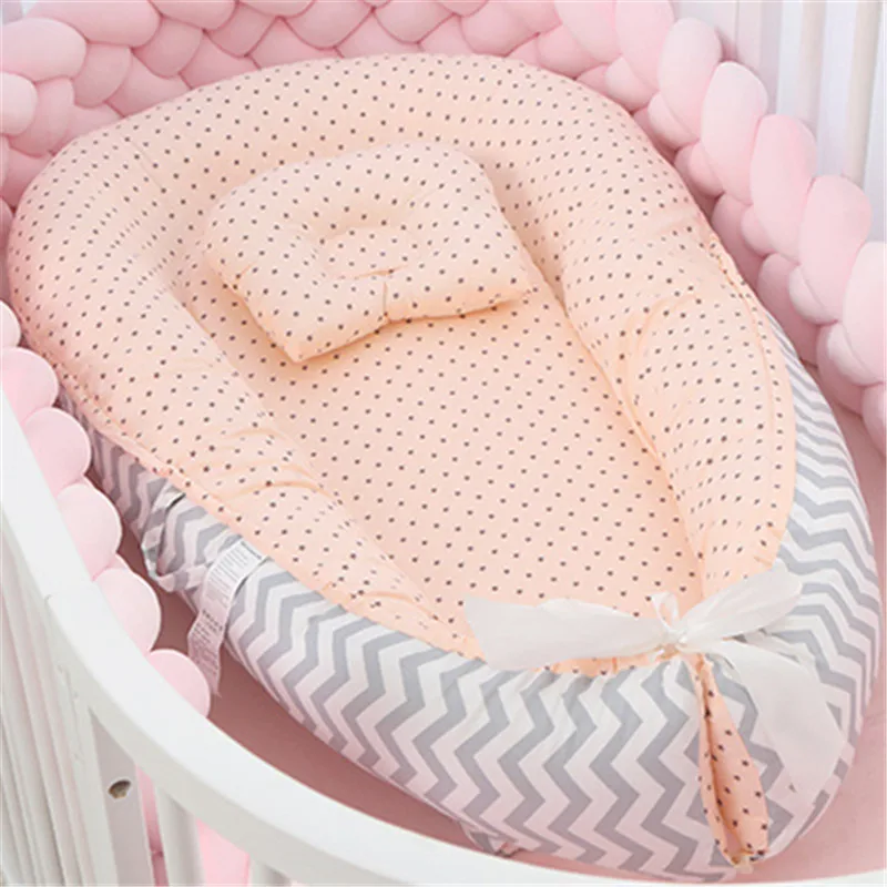 Портативная хлопковая кроватка для новорожденных, детская кроватка, колыбель для новорожденных, детская люлька, для путешествий, с подушкой, детское гнездо