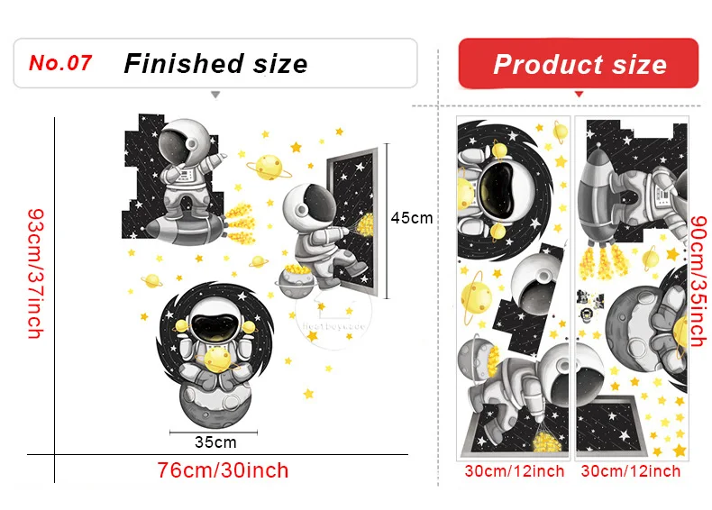 Наклейки на стену в виде большого астронавта, воздушного шара, соба...