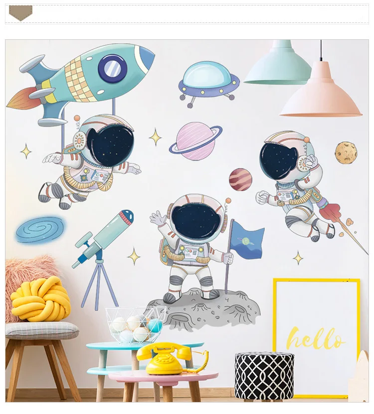 Мультяшные наклейки на стену с астронавтом, украшение для дома, обо...