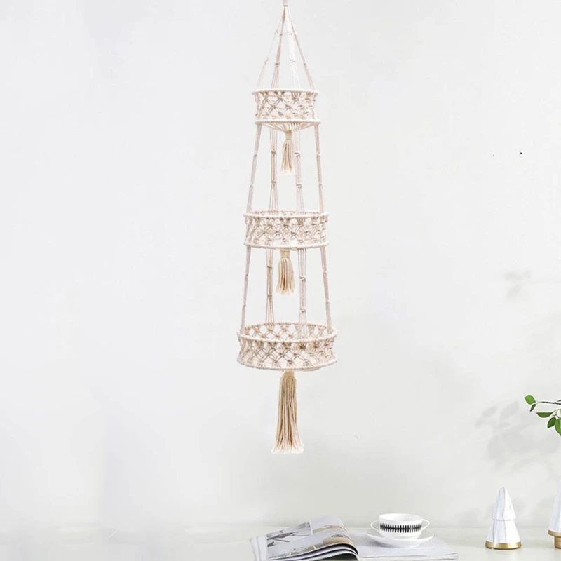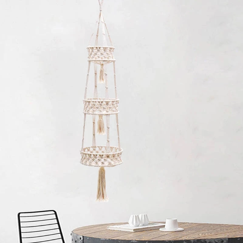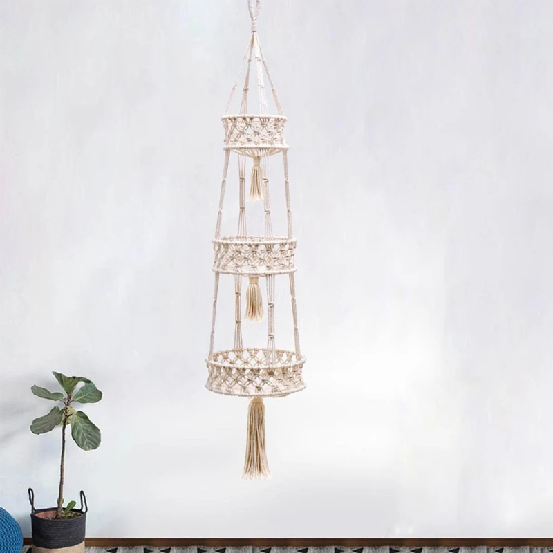 Висячая корзина макраме поднимет ваше пространство этим летом с его богемной атмосферой и установкой. Идеальные Бохо настенные корзины для кухни для организации работы в качестве тройной ярусной фруктовой корзины и комплимент всем интерьерным настройкам в лучшем случае с его нейтральными цветовыми тонами.