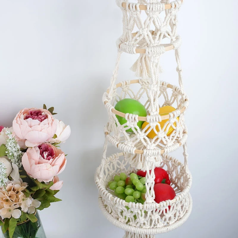 Плетеная вручную корзина для макраме, подвесной держатель для растений, органайзер для хранения фруктов и овощей, богемное украшение для дома