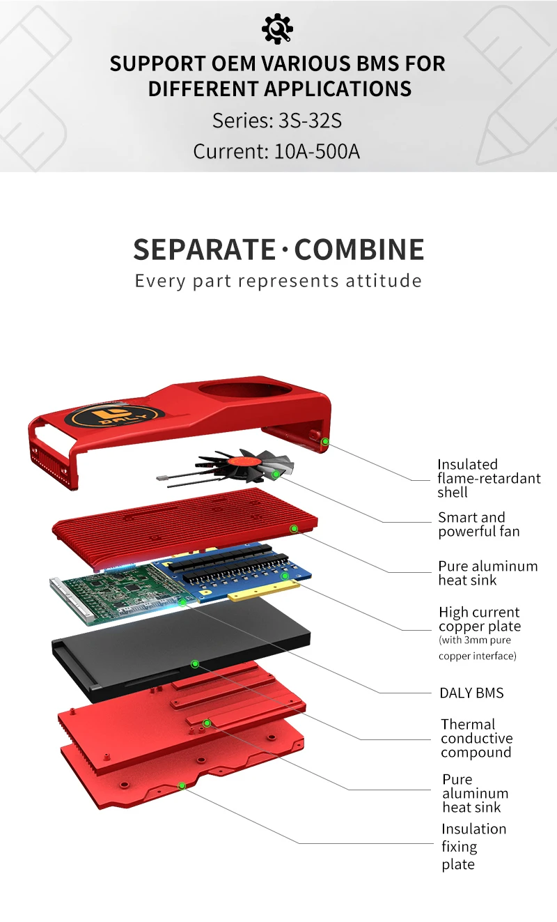Daly Factory BMS 32S LiFePo4 12V 24V 36V 48V 120A 150A 200A Li-Ion ...