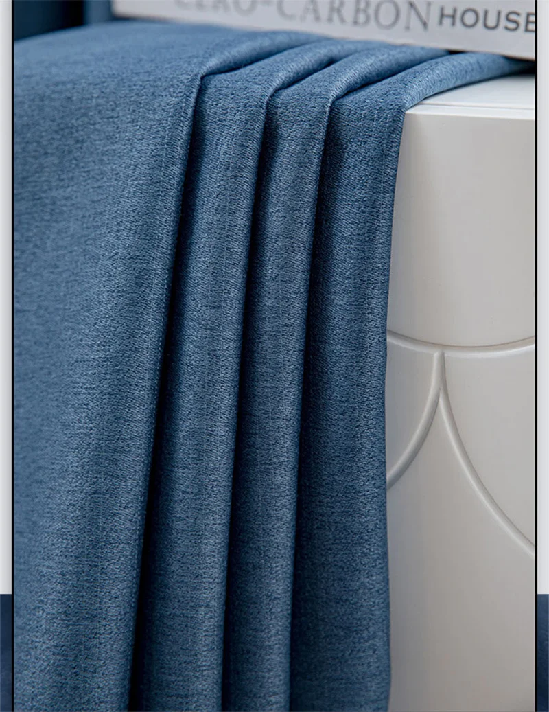 Скандинавские хлопковые льняные шторы для гостиной, толстые синие ш...