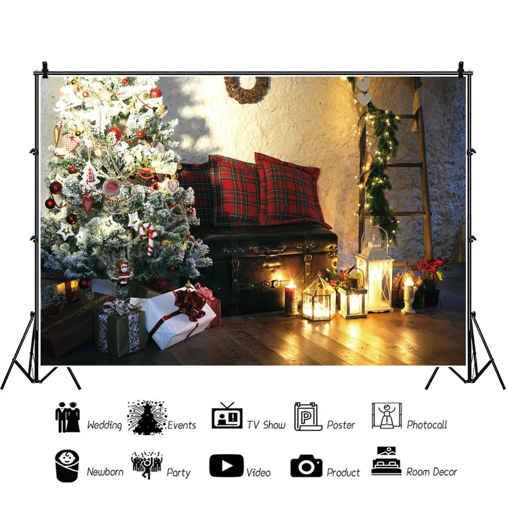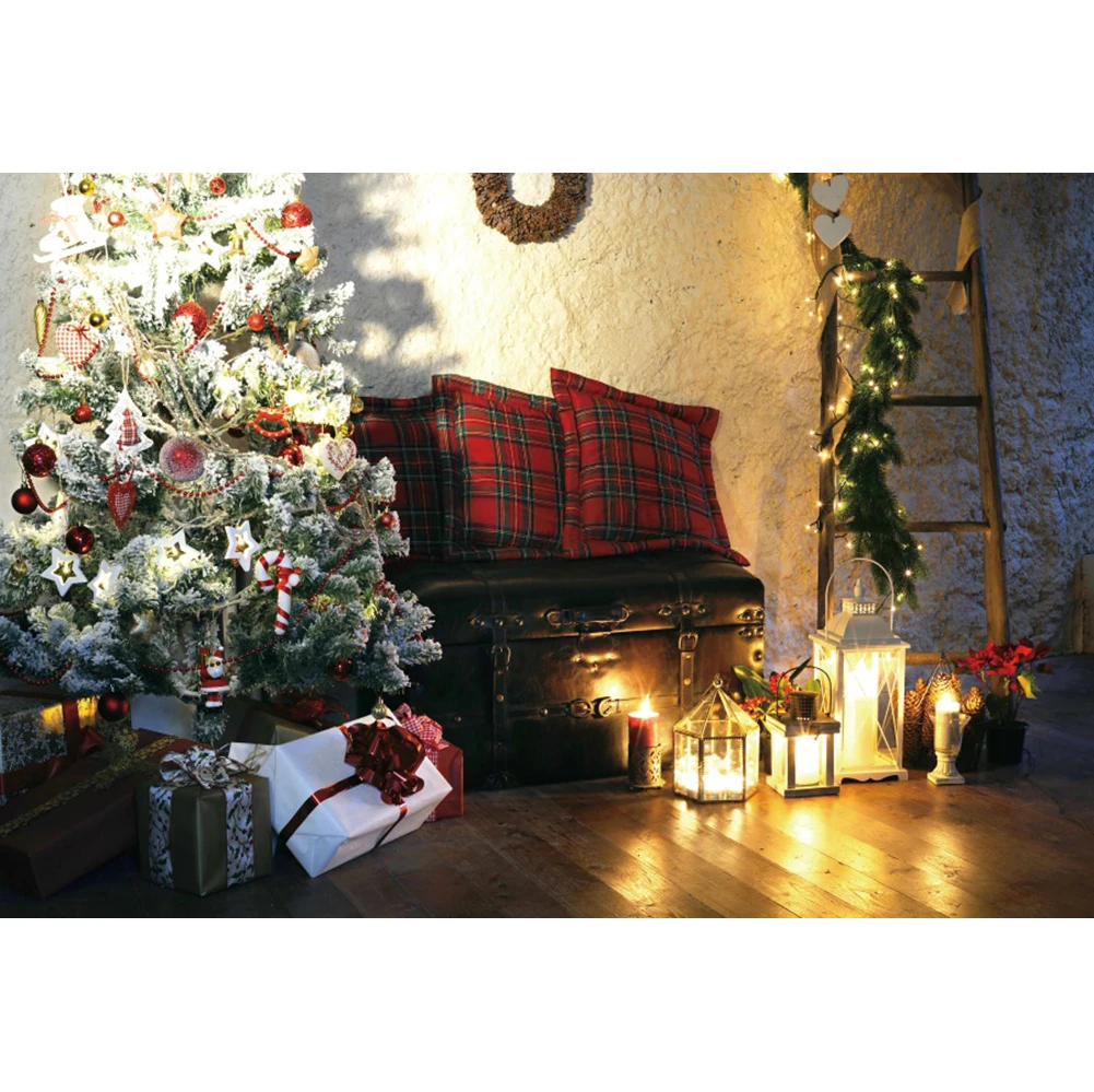 Laeacco Декор интерьера сцена белая кирпичная стена рождественской елки подарка фонарь теплого света Портрет ребенка индивидуальные фотофоны