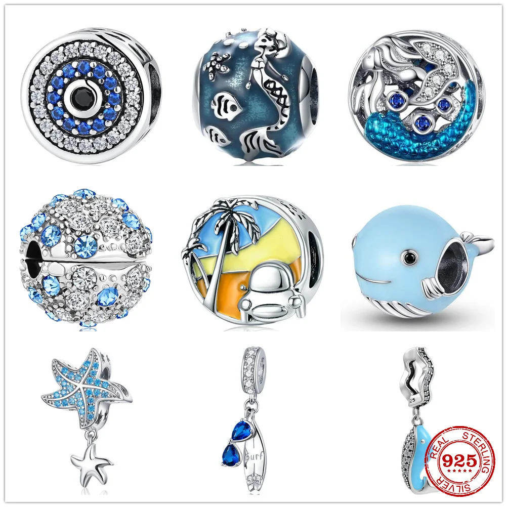 Новый Серебряный Блестящий синий кит остров Русалка подводный мир Подходит для Pandora Шарм серебро 925 пробы браслет из бисера с стильными ювелирными изделиями своими руками