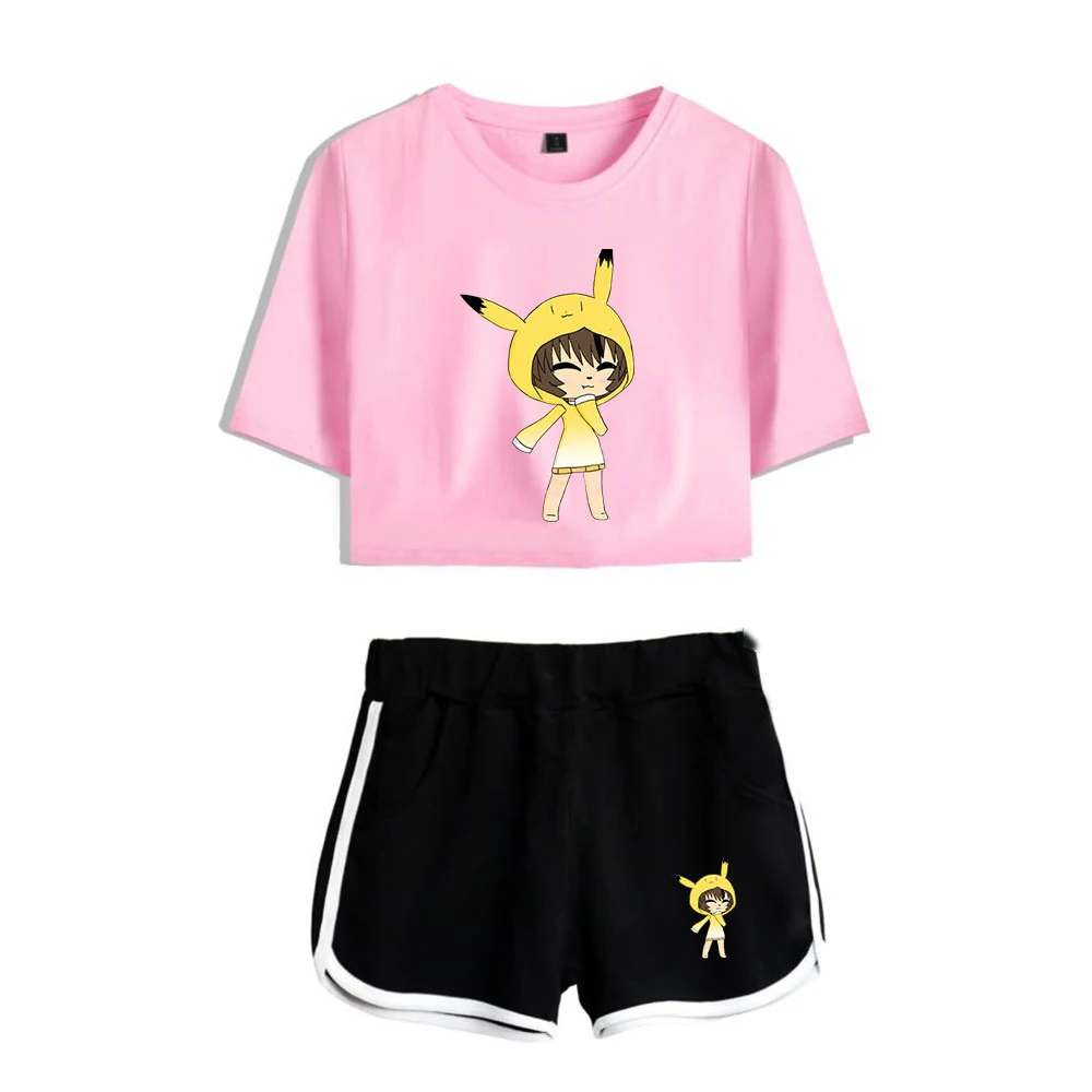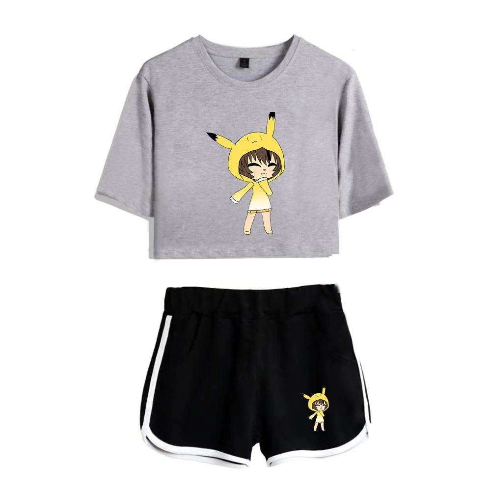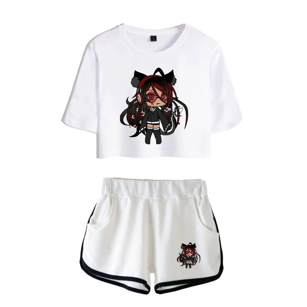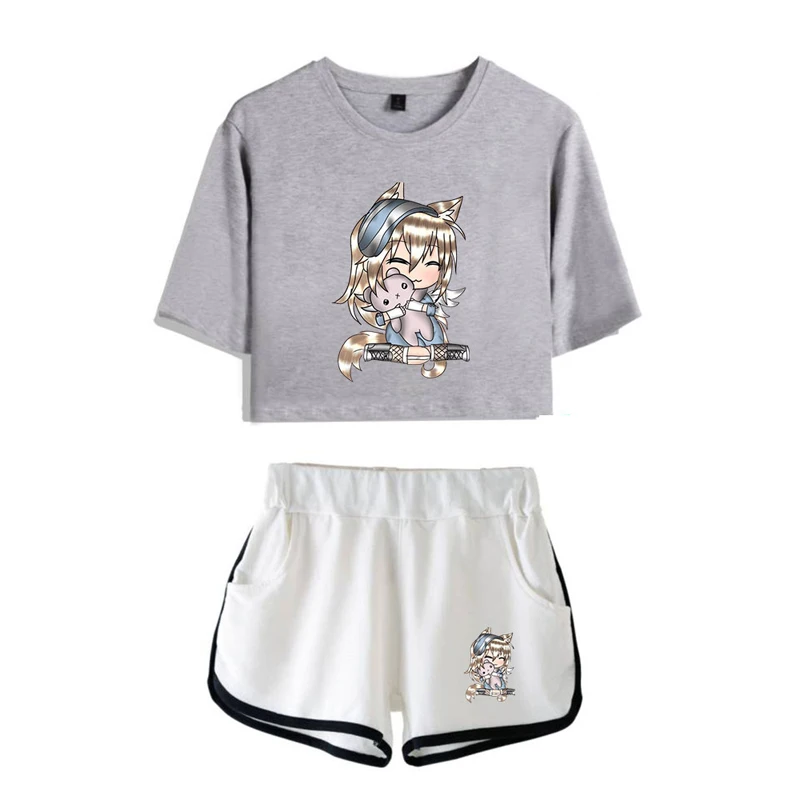 Лидер продаж, Женский комплект из двух предметов Game Gacha Life, шорты и Милая футболка, уличная одежда в стиле Харадзюку, пуловеры для девочек, летняя одежда в стиле Харадзюку