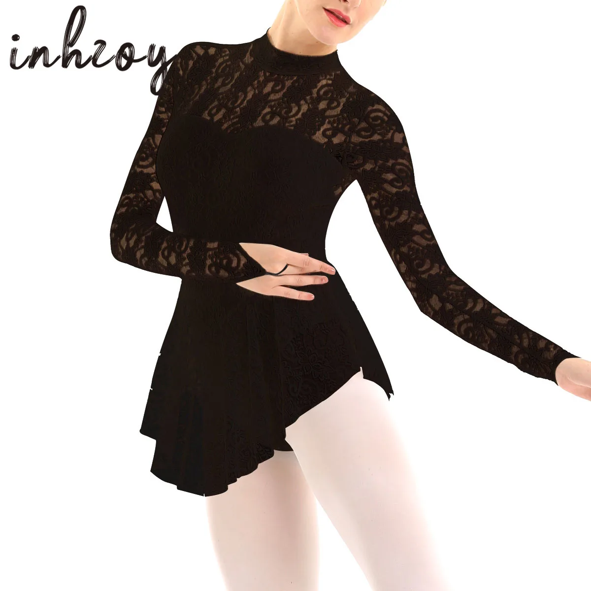 Женское платье для фигурного катания на коньках, кружевное балетное трико с длинными рукавами