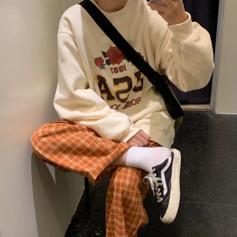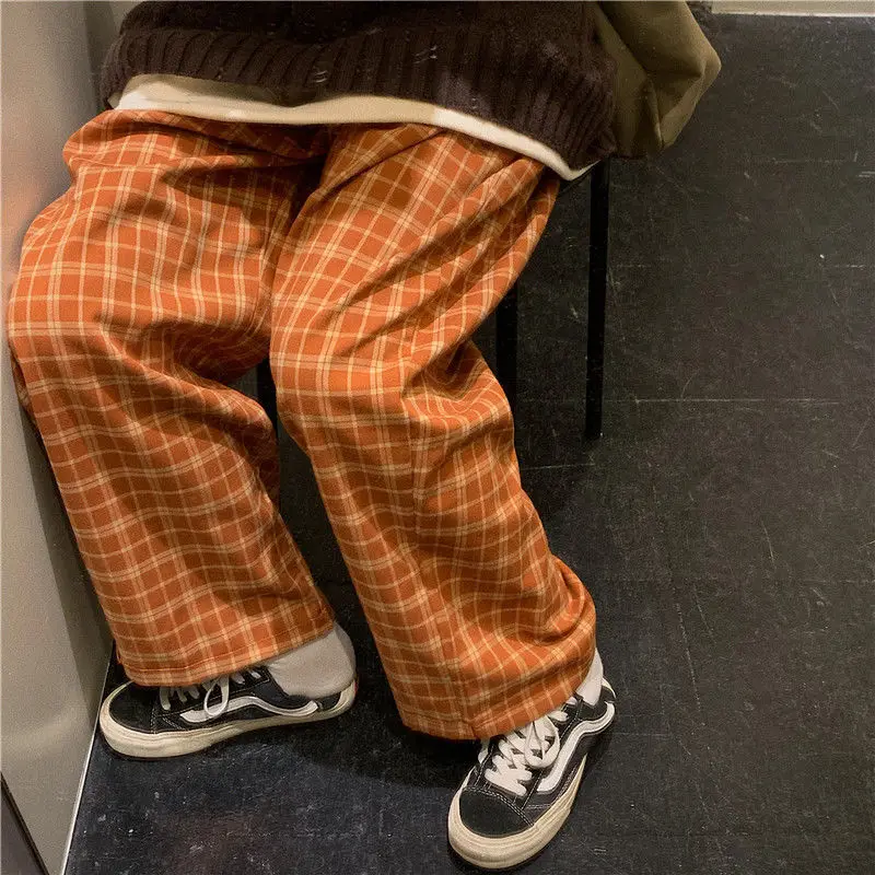 Женские клетчатые брюки Harajuku, Большие широкие брюки в Корейском стиле, клетчатая Пижама с высокой талией на весну и лето, 2021