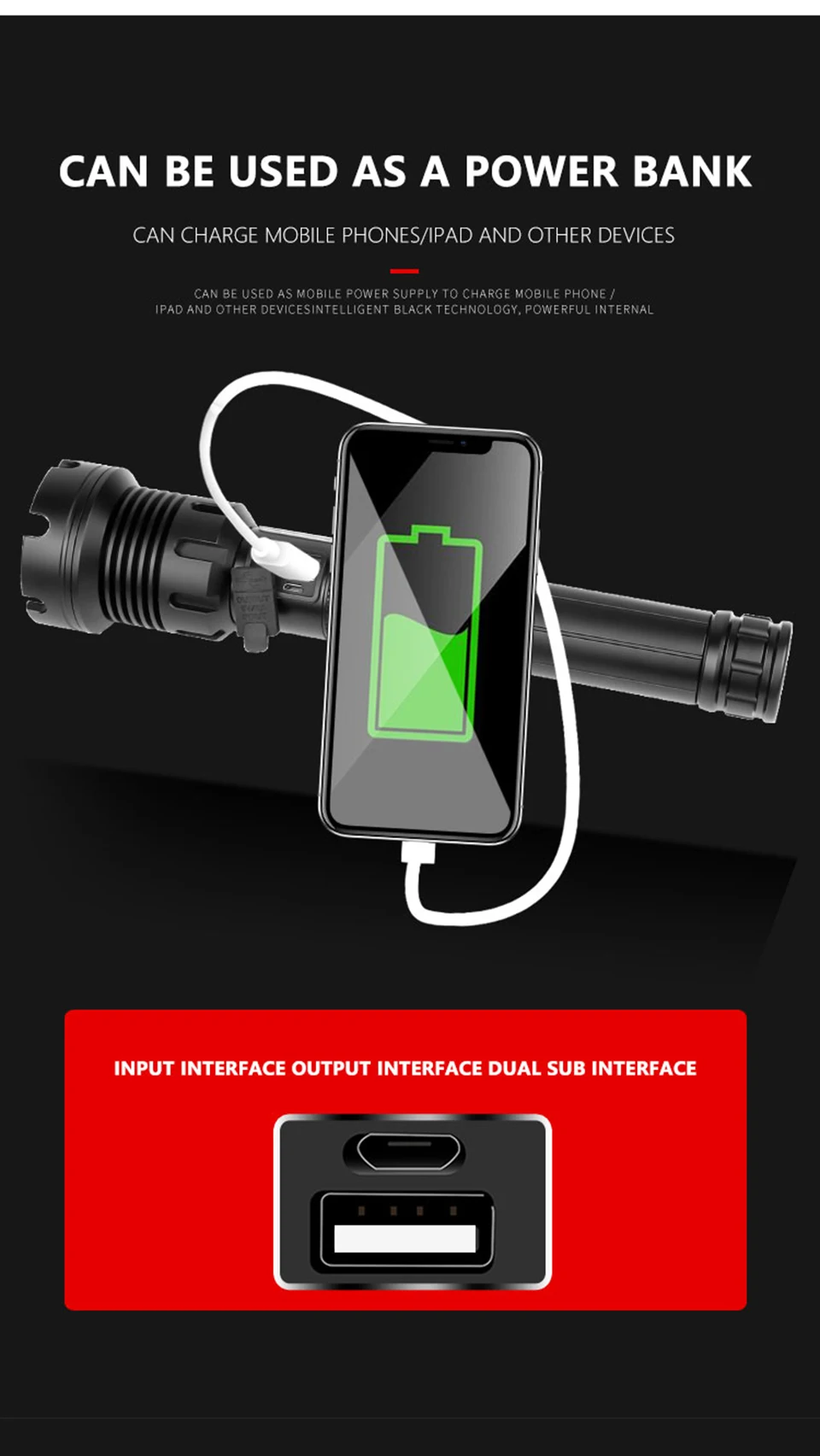 Внешний аккумулятор XHP90.2, 4-ядерный светодиодный фонарик, функци...