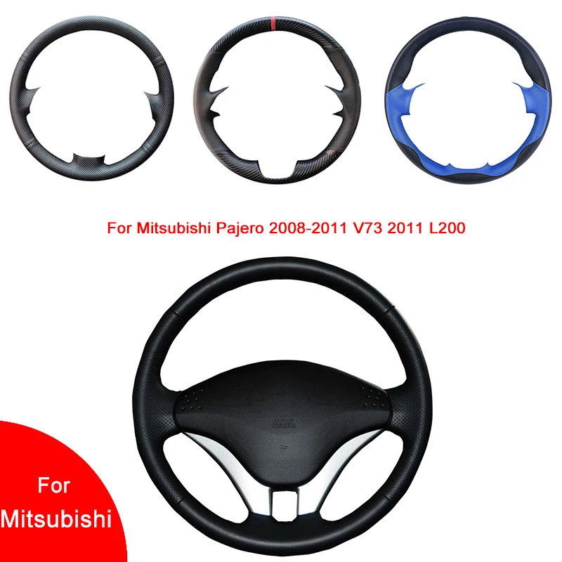 Дышащая прошивка вручную, черная искусственная кожа, чехол на руль автомобиля для Mitsubishi Pajero 2008-2011 V73 2011 L200