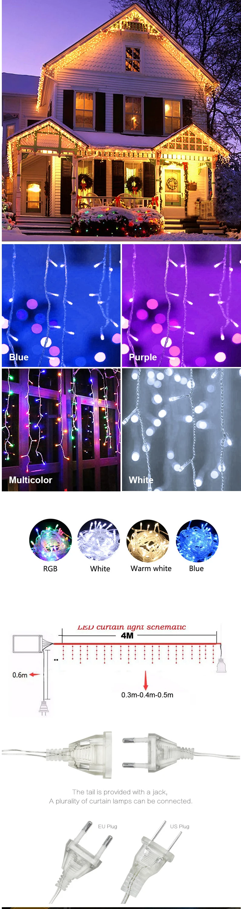 Спецификация:Светодиодный цвет: теплый белый/многоцветный/синий/фиолетовыйНапряжение: ac220в или ac110в (пожалуйста, выберите правильное напряжение, которое используется в вашей стране, это очень важно!)Количество дропа: 19 линийКоличество СВЕТОДИОДНЫЙ: 96 шт.Размеры: 5 м (Ш) х 0,4 м (H)+ 0,5 m (H)+ 0,6 m (H)Материал: ПП, ТПР и CR-V стальТвердость: H.R.C. 50-52Разъем к разъему: всего 5 метров в длинуСредняя линия (строка Длина):4 metersPlug до контроллера: 0,6 метровКонтроллер для светильник: 0,2 метрКраевая заглушка для светильник: 0,2 метрЦвет кабеля: прозрачный белый8 мигающих режимов с управлением BoxCombinationIn waveSequentialSlo gloChasing/FlashSlow faditwinkle/FlashSteadyПосылка включает в себя:1 шт. светильник для шторПримечания: Этот светильник для занавесок с расширенной вилкой можно подключить к другому