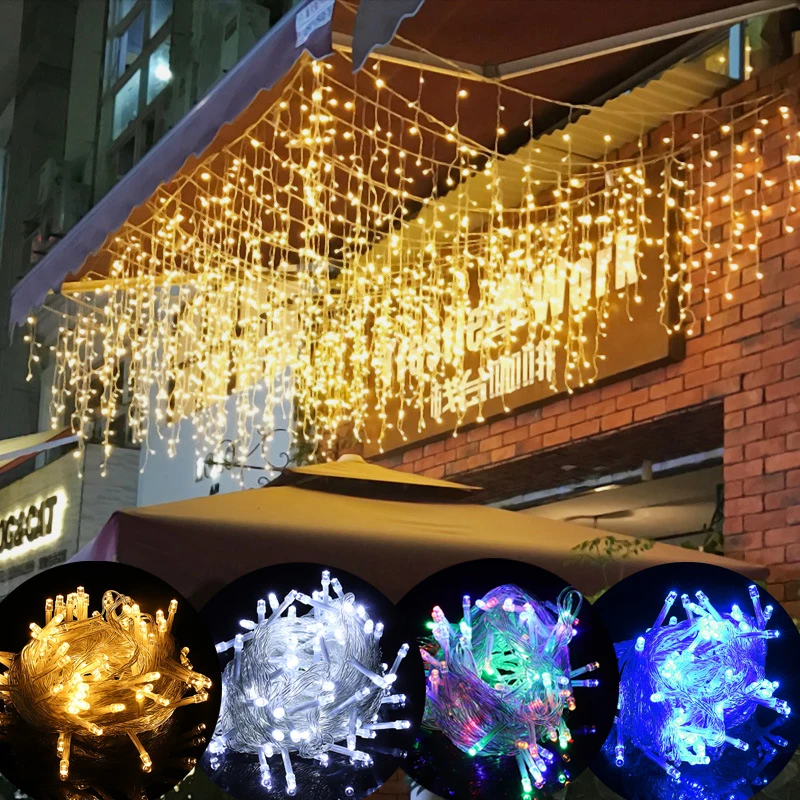 Рождественское украшение, 2022 гирлянда светодиодный ная Гирлянда-занавеска, светящаяся гирлянда с управлением от падения, USB-занавеска для дома, спальни, оконная осветительная полоса