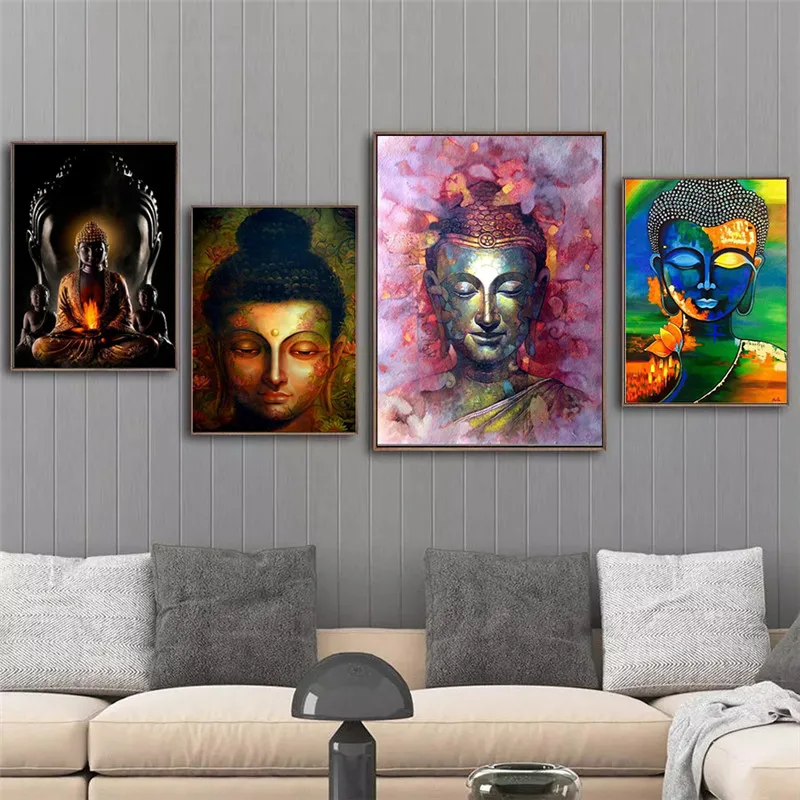 Абстрактная картина с изображением Будды на холсте, современный цве...