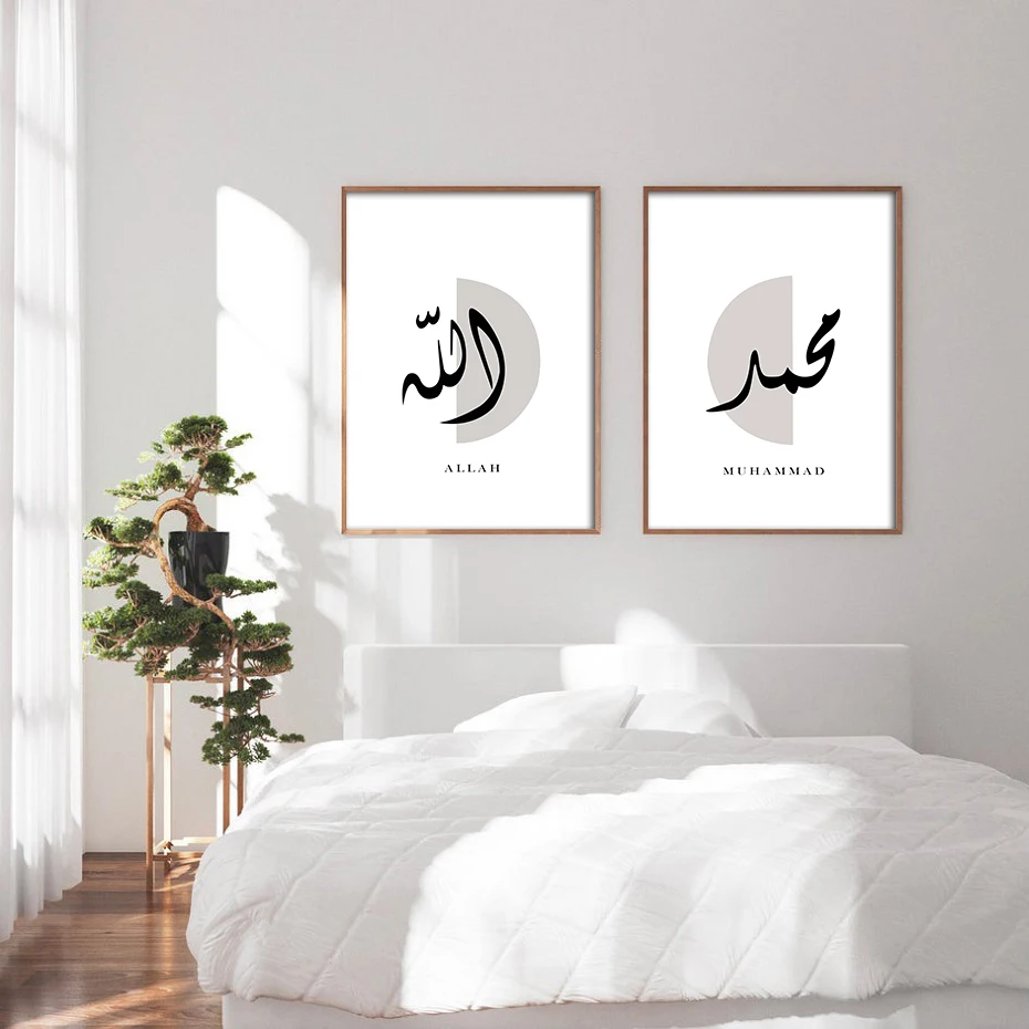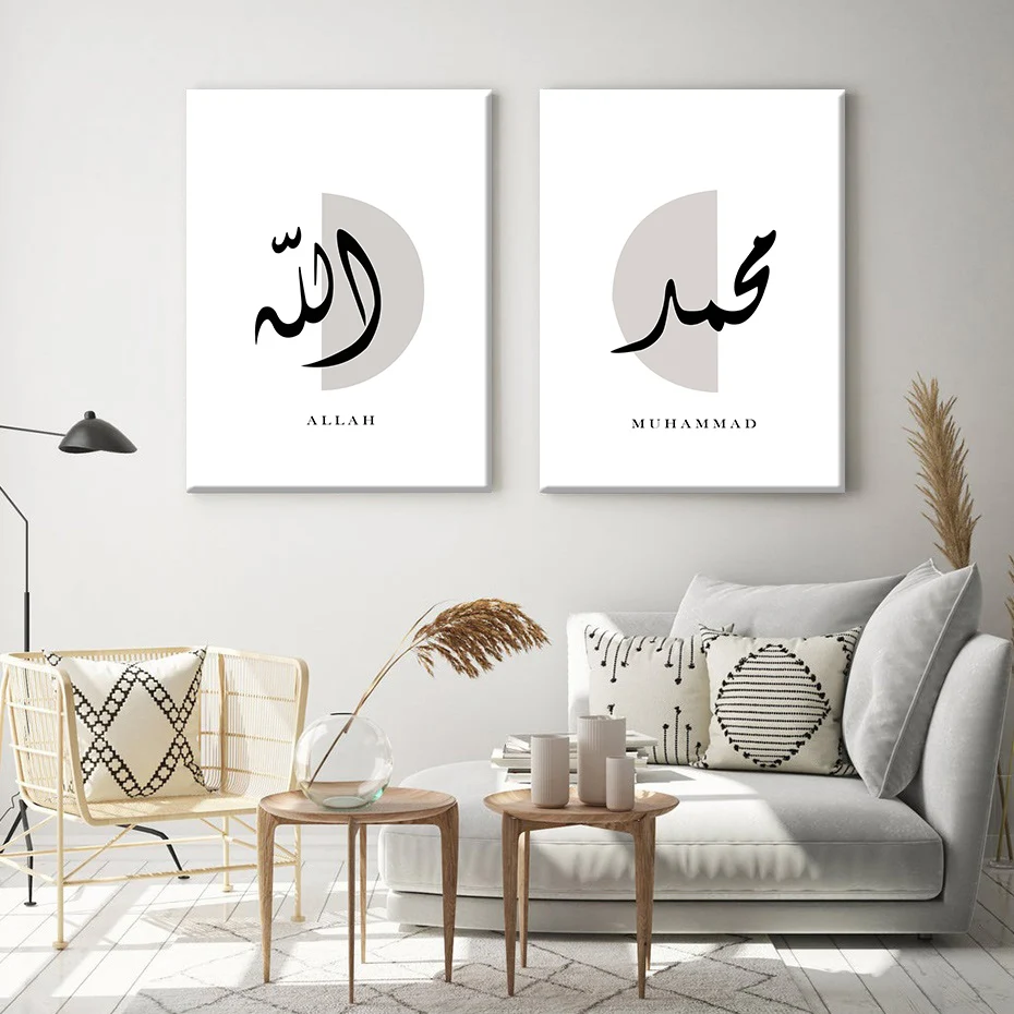 Мухаммедом стена Аллаха художественный принт минималистский исламский арабский холст с каллиграфией картина Плакаты фотографии интерьера домашний декор