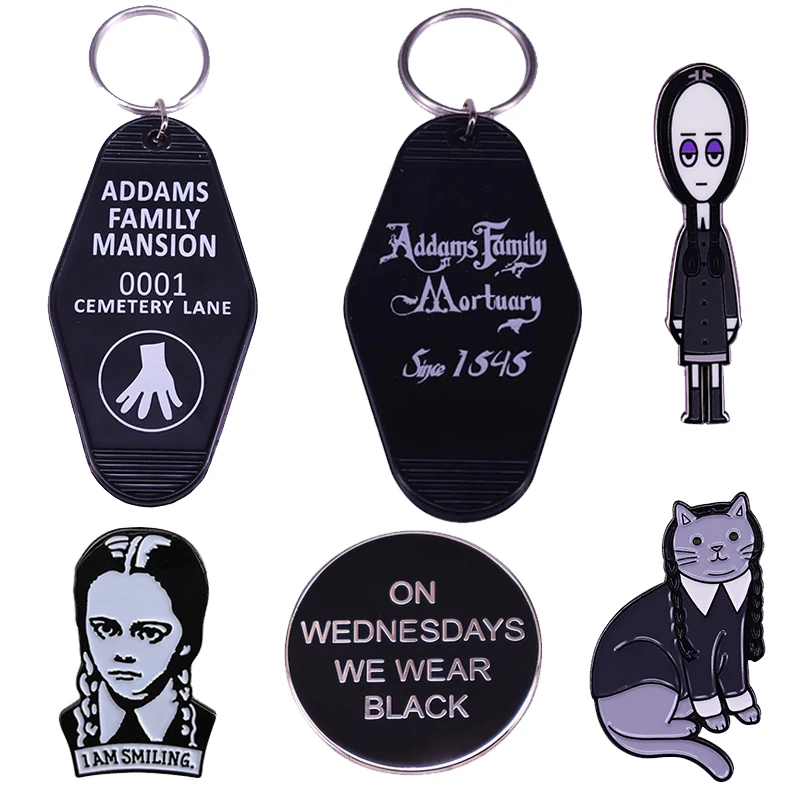 Темный среда Аддамс Семья значок готический темно исцеления Праздничная брошь из фильма на Хэллоуин в готическом стиле и стиле панк эмали штырь брелок для ключей
