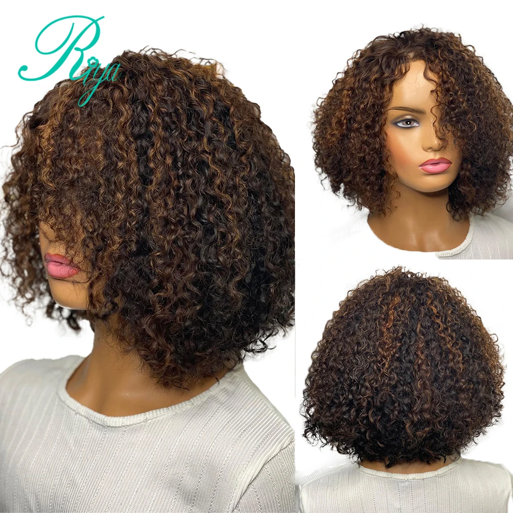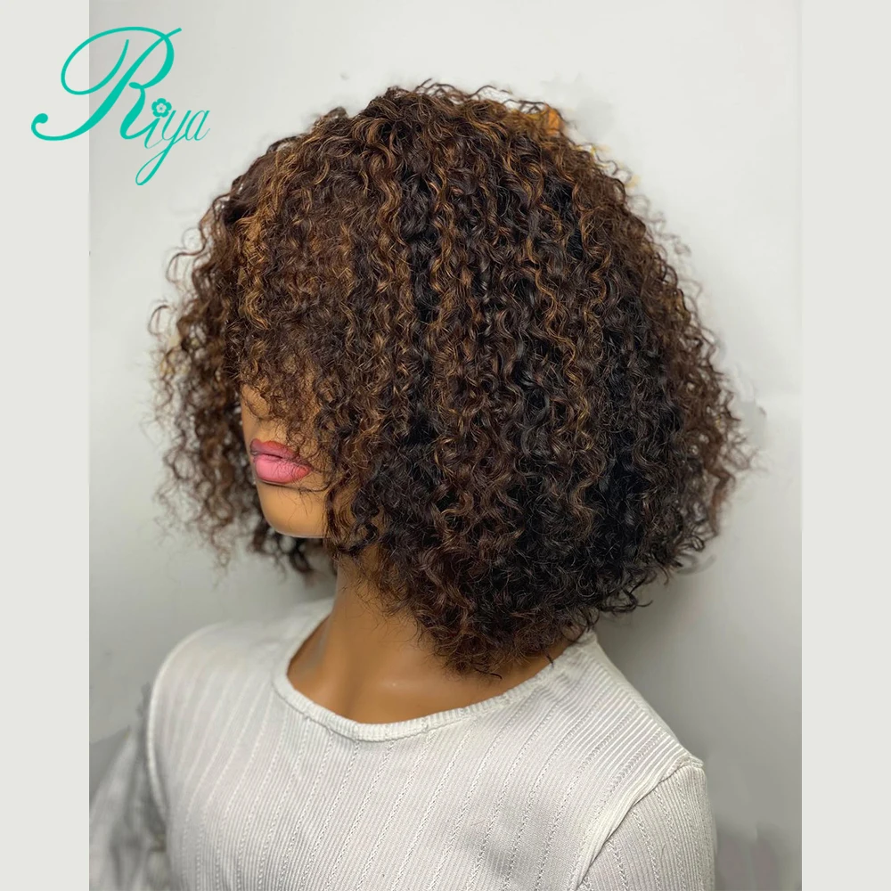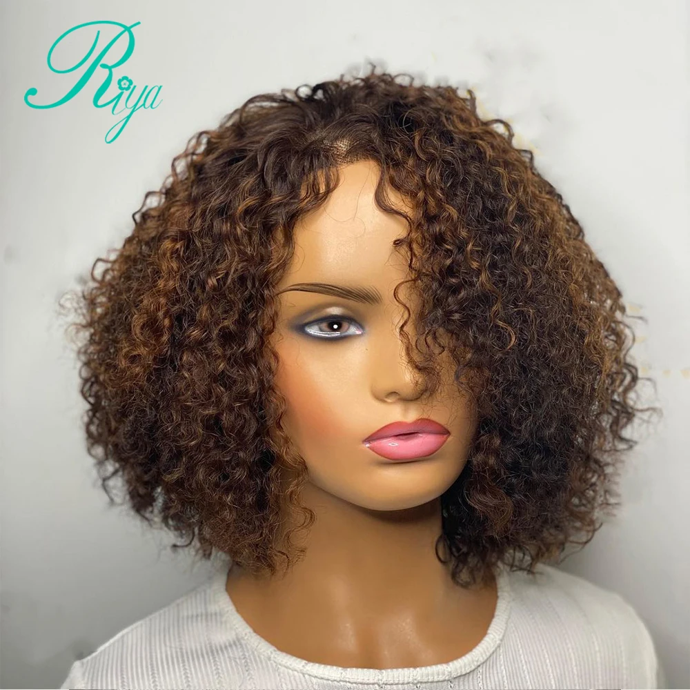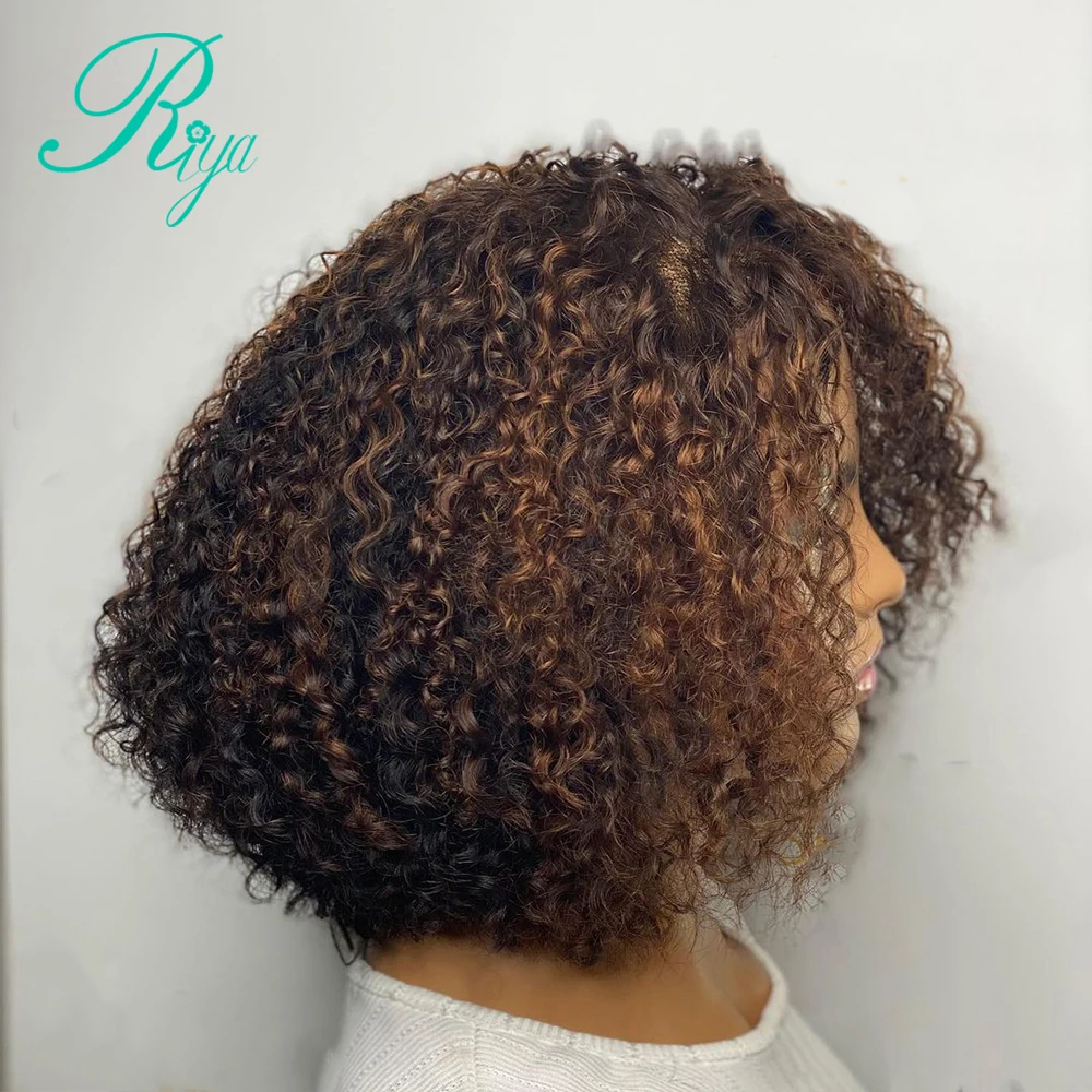 Невидимая подсветка, медовый блонд, пикси, короткие, афро кудрявые, кудрявые, 4X4, кружевная застежка, Боб, кружевная передняя часть, человеческие волосы WigRemy