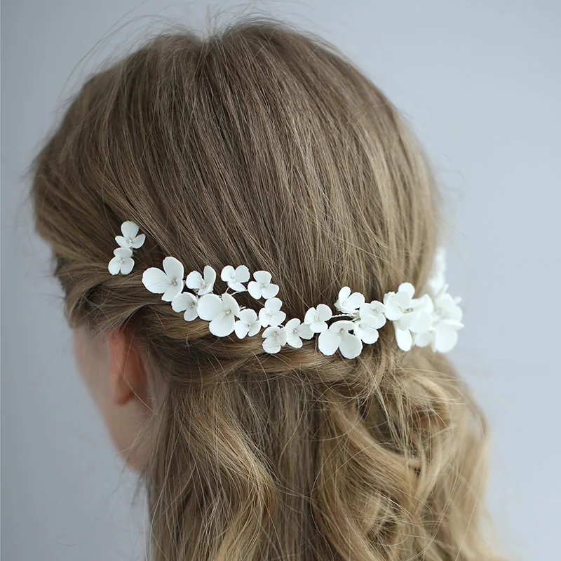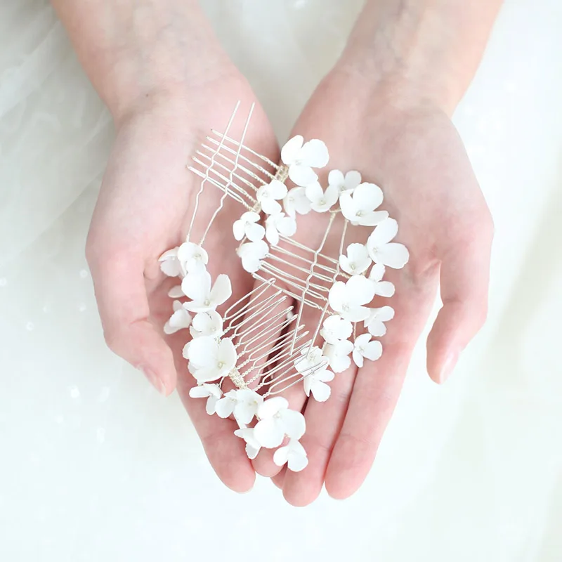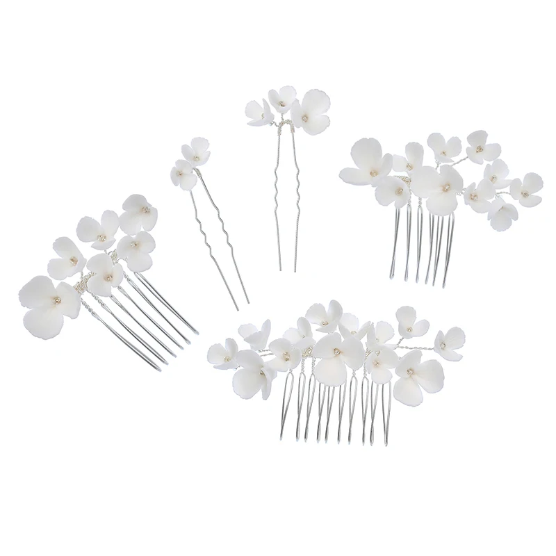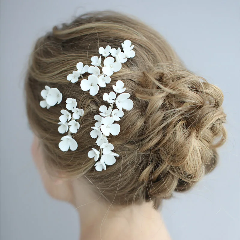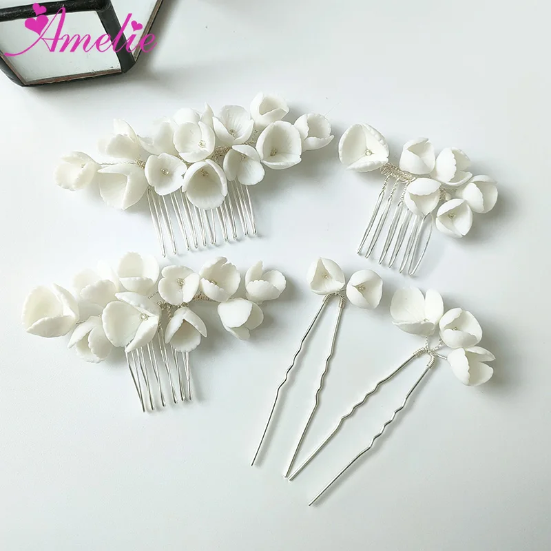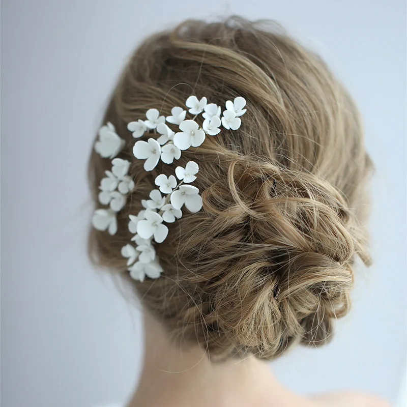 Набор гребней для волос с белыми фарфоровыми и керамическими цветами, свадебные аксессуары, бижутерия для волос, женский головной Убор