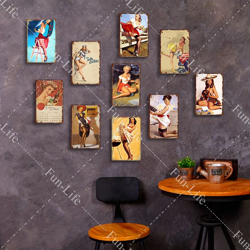 Сексуальные красавицы ретро-таблички Плакат Металлический Знак Плакат винтажная жестяная тарелка живопись Декор Бар Магазин паб Wall Art Наклейки