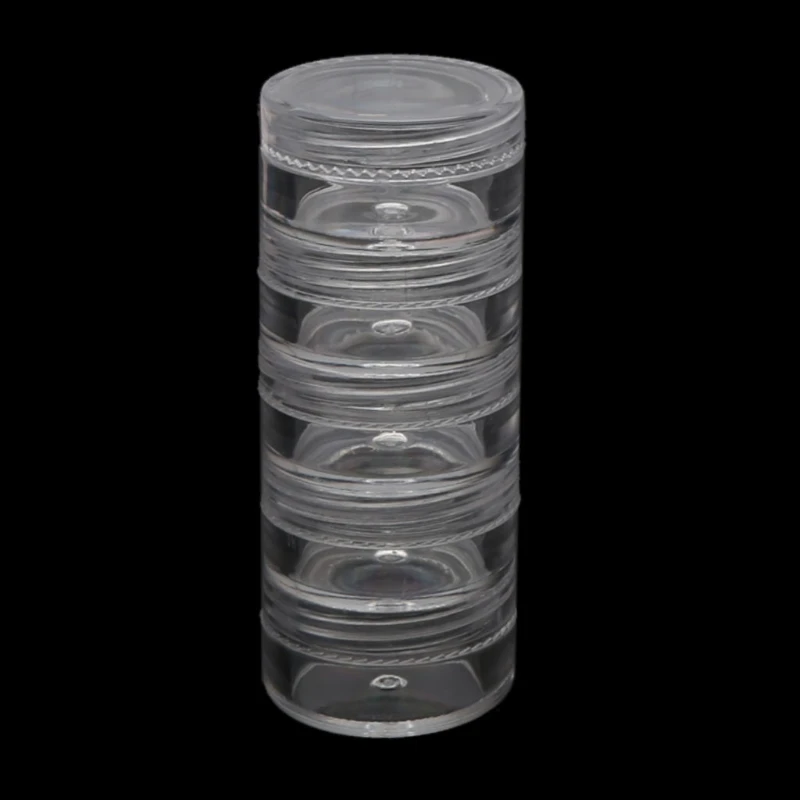 5 Слои стекируемые бисера контейнеры мелких предметов Пластик Круглый прозрачный сосуд для хранения коробка C1FC