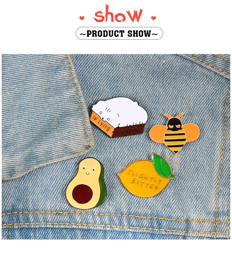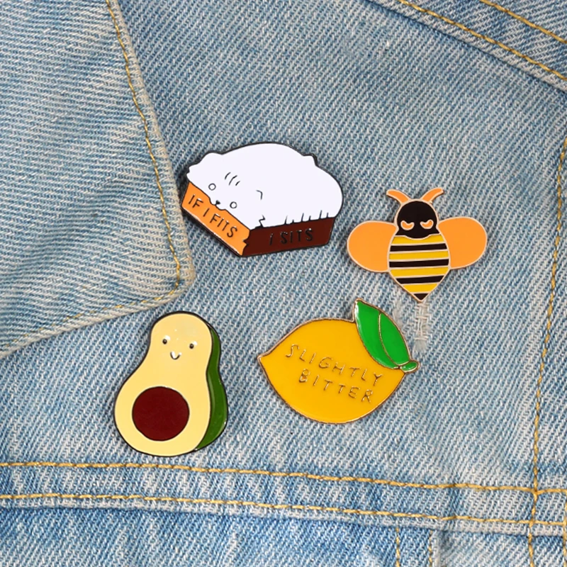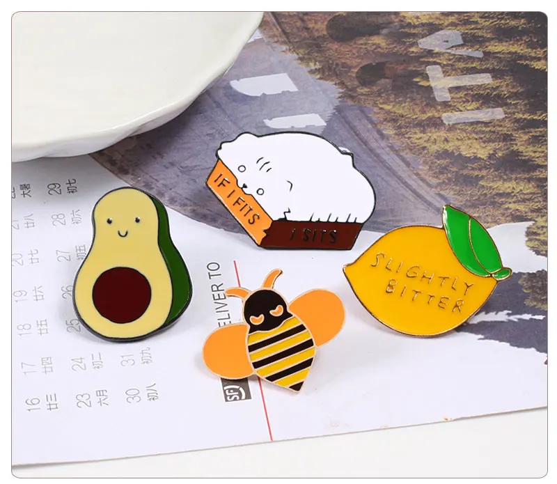 Брошка мультфильм милый авокадо лимон пчелы кошки эмалью, булавки д...