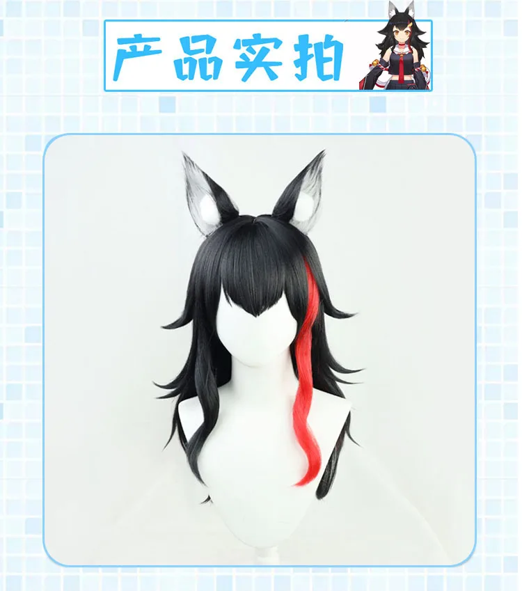 VTuber Hololive Ookami Mio парик уши Ookami Mio черный красный выделитель длинный Neta волк девушки косплей синтетические волосы ролевая игра