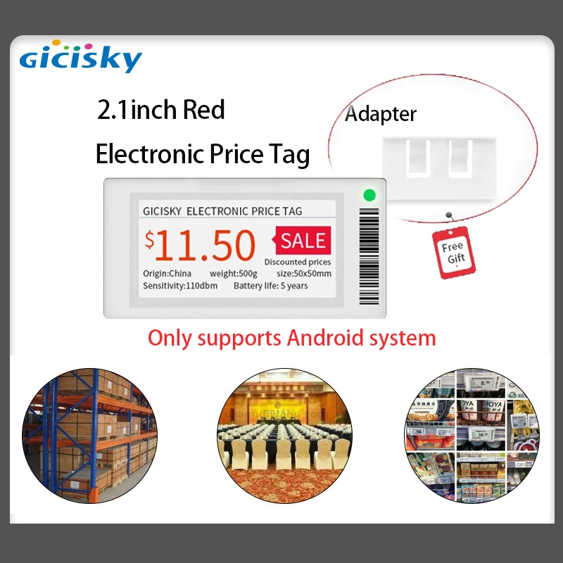 Электронный Ценник Gicisky epaper, 2,1 дюйма, 1 комплект, Bluetooth версия Eink с кронштейном, фоновая Замена для торгового центра, простота в эксплуатации