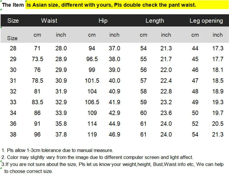 Данный товарАзиатский размер, отличается от вашего, пожалуйста, дважды проверьте обхват талии брюк.
