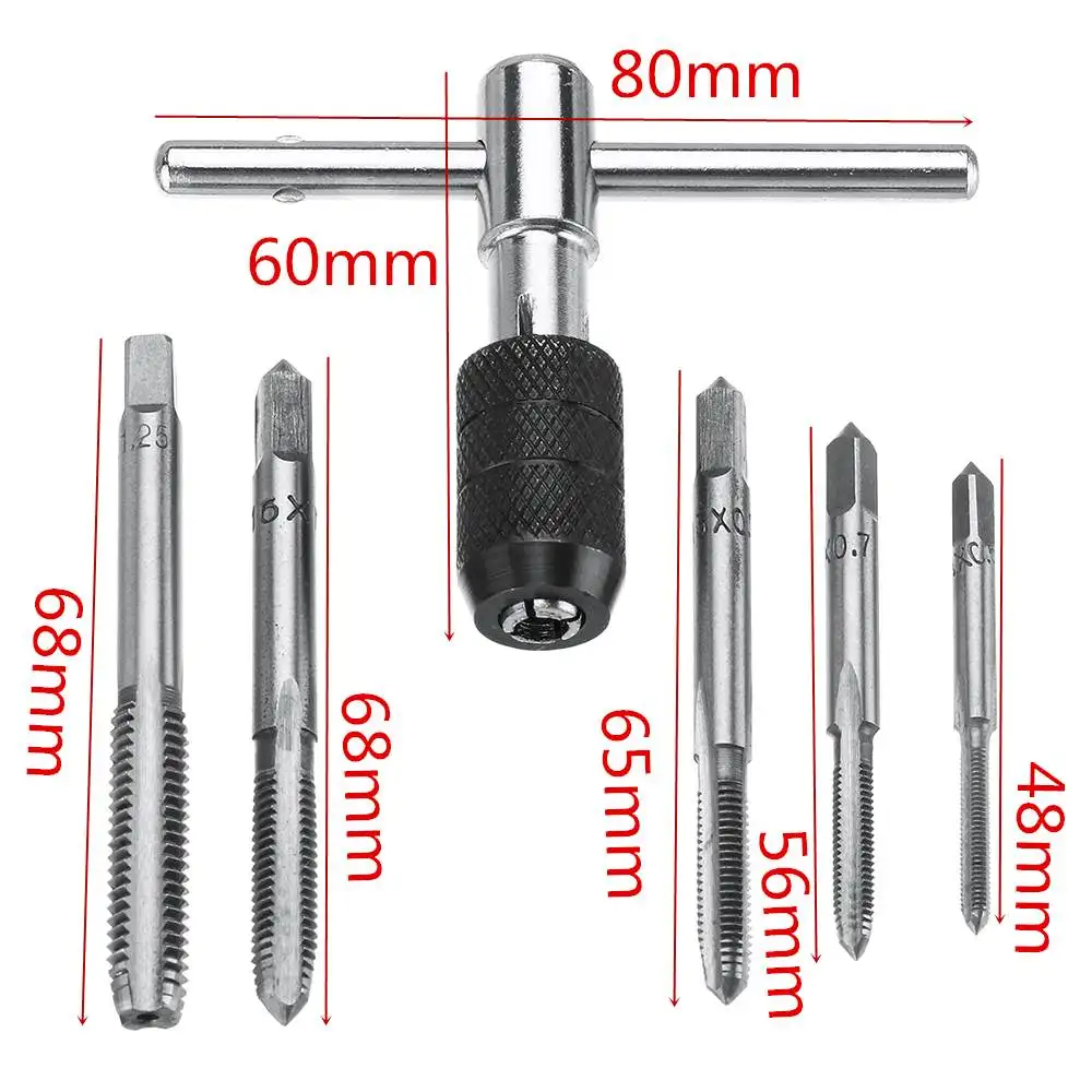 * Набор из 6 метчиков с Т-образным патроном, 5 размеров, прост в использовании.