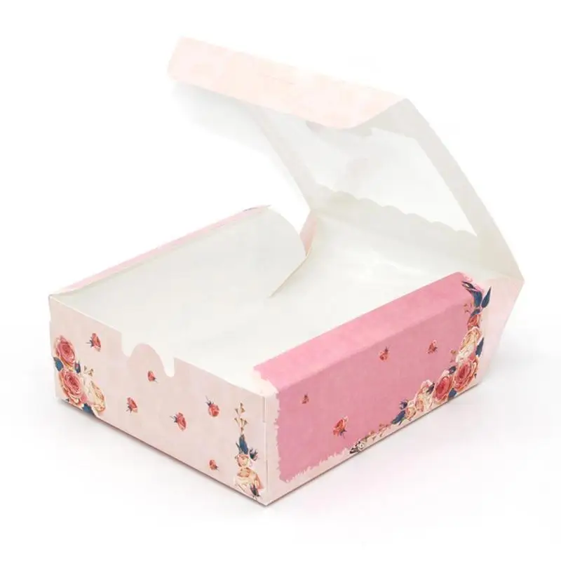 Подарочная коробка с окном, розовый цветок, коробка для кексов, Упаковка конфет для коробок для тортов, вечеринок, печенья, подарки на Рождество K6T5