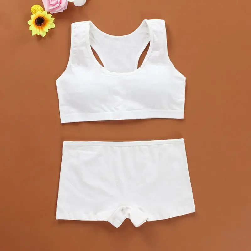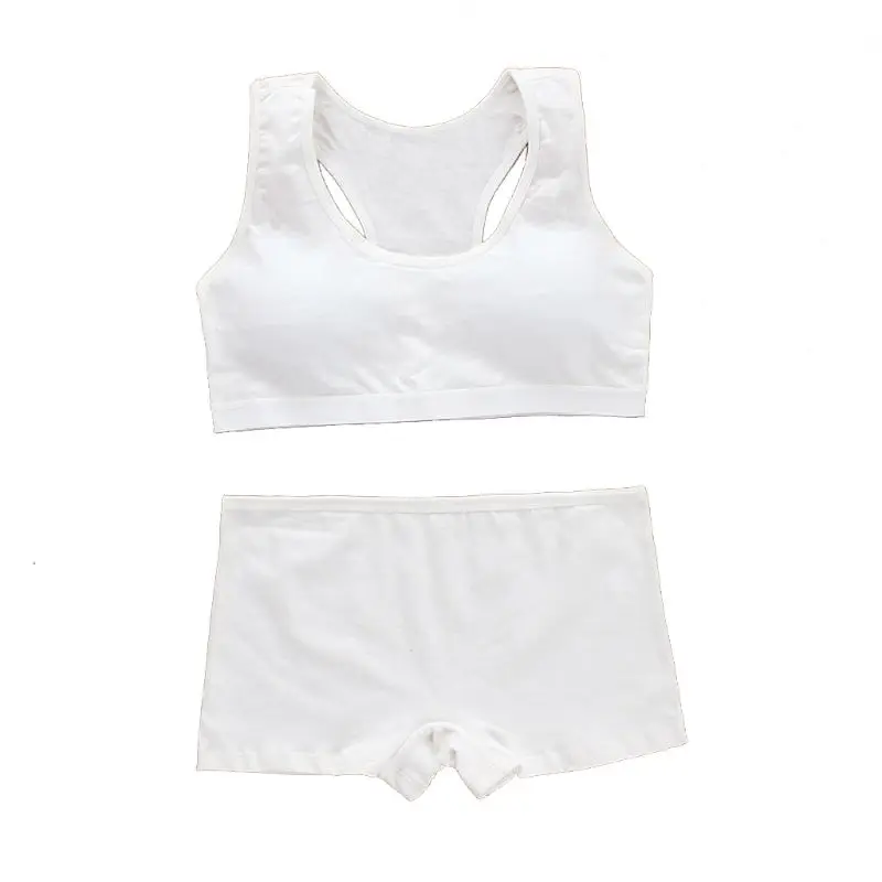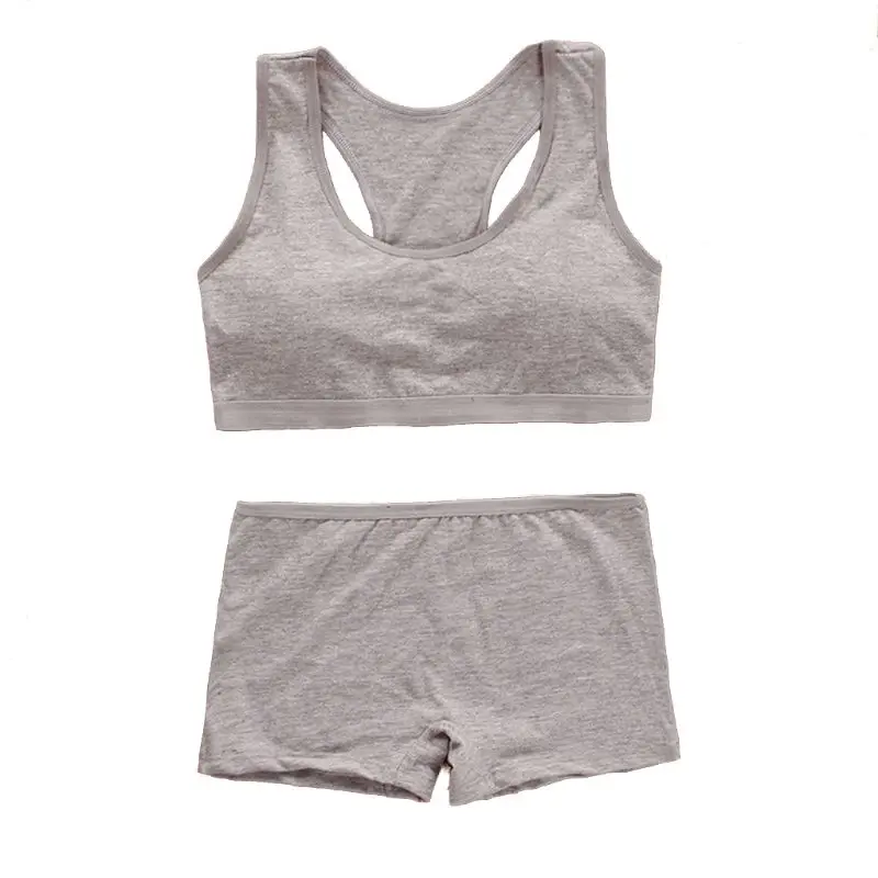Спортивный бюстгальтер для девочек-подростков, нижнее белье для тренажерного зала, спортивный бюстгальтер без косточек для подростков с трусами, хлопковый тренировочный комплект с бюстгальтером для молодых девушек