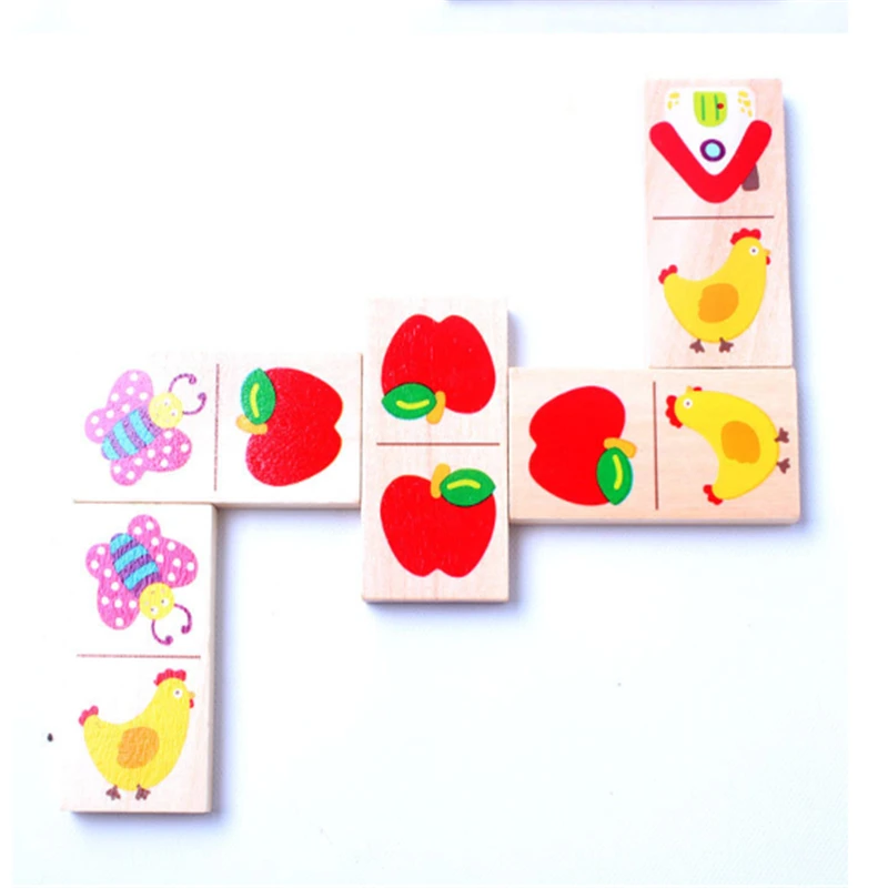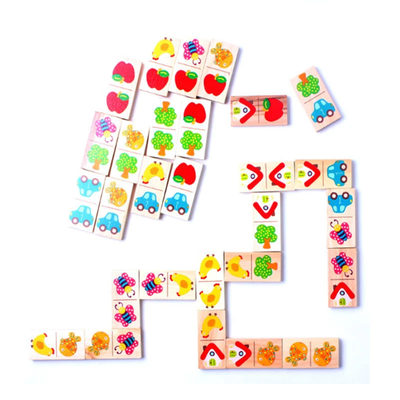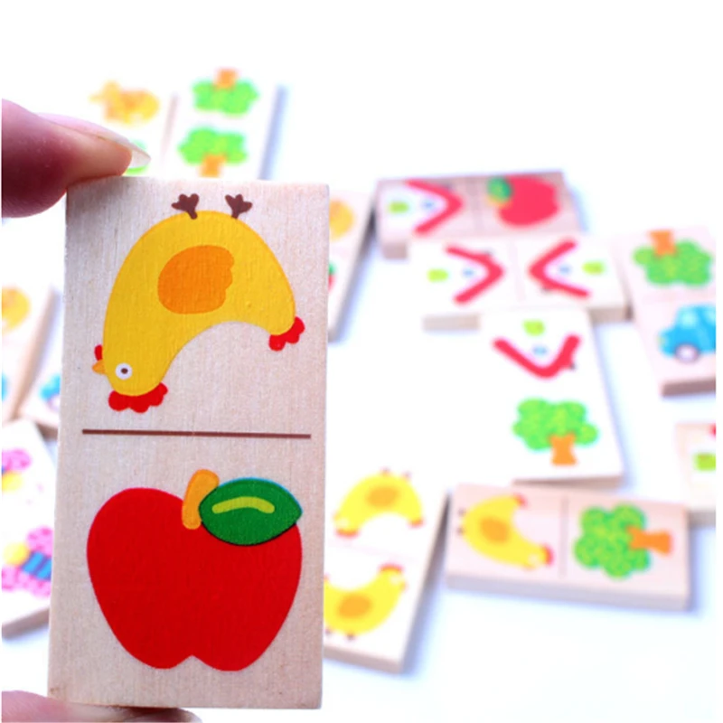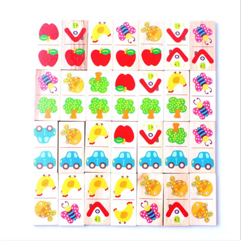 28 шт детский деревянный блок домино игрушки мультфильм сад животное автомобиль фрукты блок домино s игрушки строительные блоки Обучающие