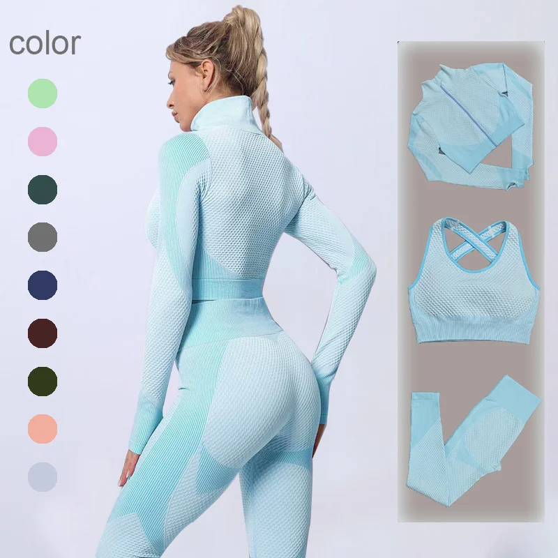 Бесшовное трикотажное мягкое растяжениеНевидимый толстый материалТоп для йоги на молнии, эластичный и дышащийБесшовные штаны для йоги с высокой талиейОбтягивающий сексуальный