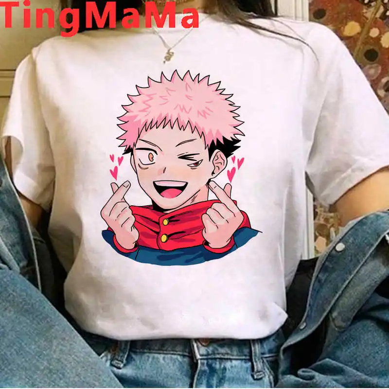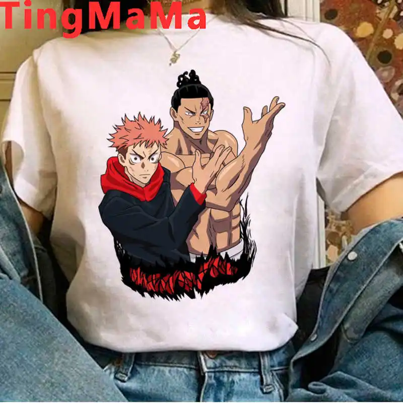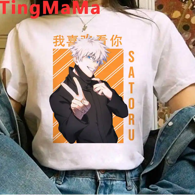 Футболка с изображением юдзюцу Kaisen Gojo Satoru Yuji Itadori, мужская белая футболка, пара кавайных футболок с рисунком, одежда в стиле Харадзюку, летний топ