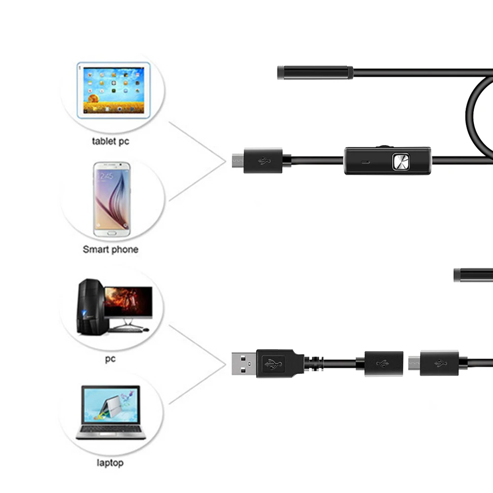 7 мм Мобильный телефон эндоскоп Водонепроницаемая труба USB IP67 водонепроницаемая 6LED промышленная Инспекционная камера Авто Ремонт пробная змея трубка