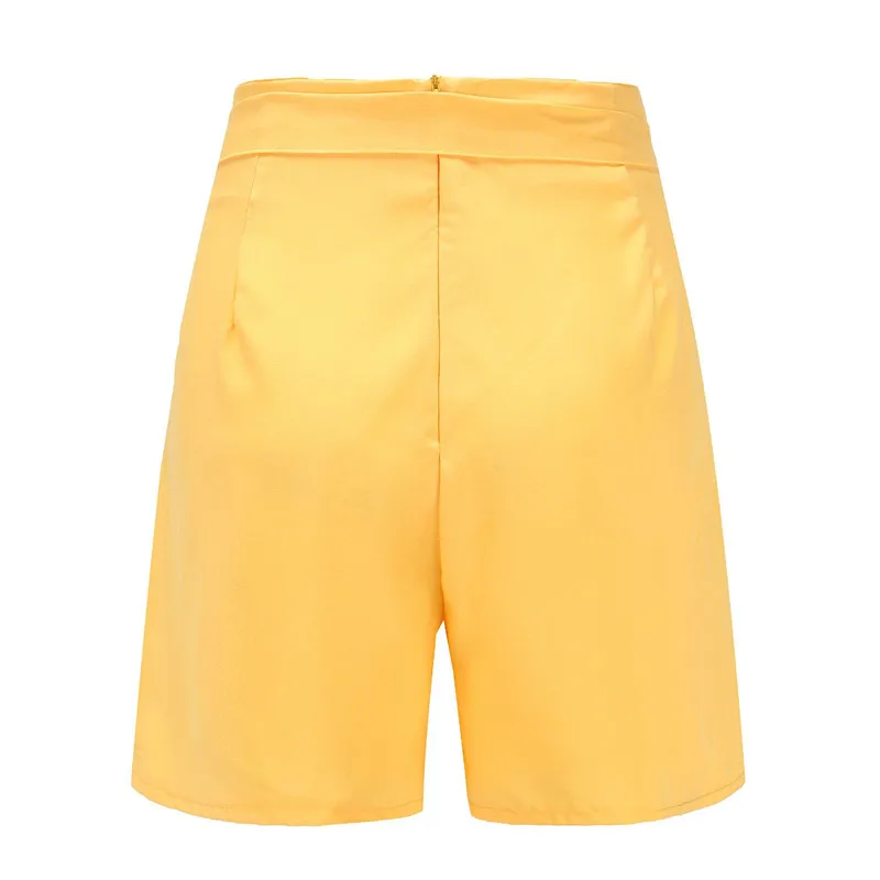 Женские шорты с высокой талией, пуговицами и поясом, элегантные обт...