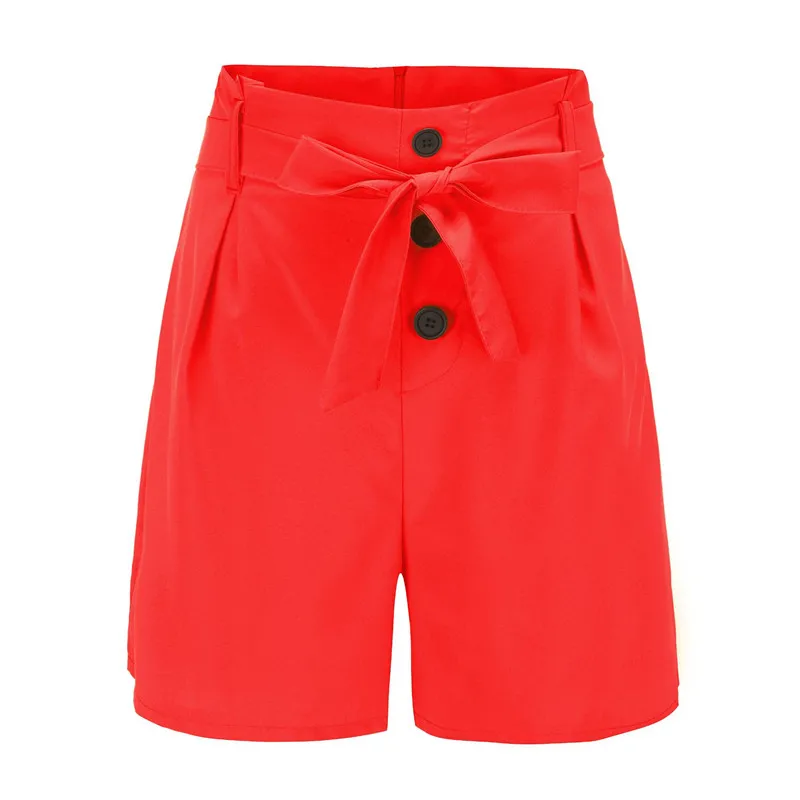 Женские летние шорты с высокой талией, повседневные однотонные пляжные узкие шорты с ремнем, черные, красные, белые, желтые шорты, джинсы, оптовая продажа