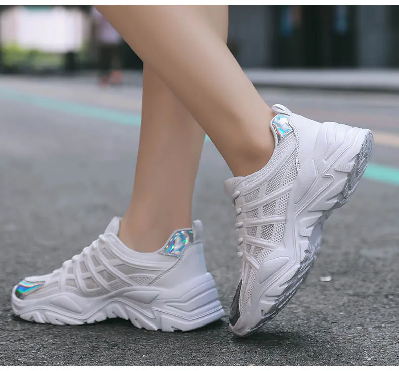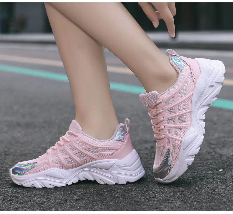 Женские кроссовки PINSEN, из дышащей сетки, на плоской платформе, на шнуровке, осень 2021