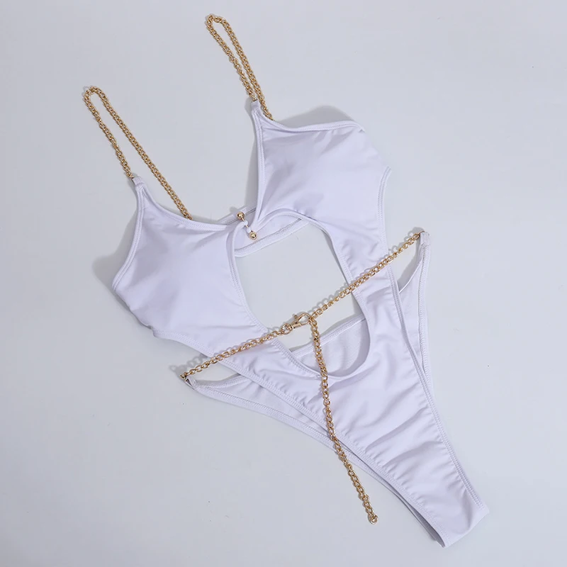 Новинка 2021, сексуальный купальник с вырезами и цепочкой, женские стринги, бразильский слитный купальник, стринги, монокини, пляжные боди, женский купальник