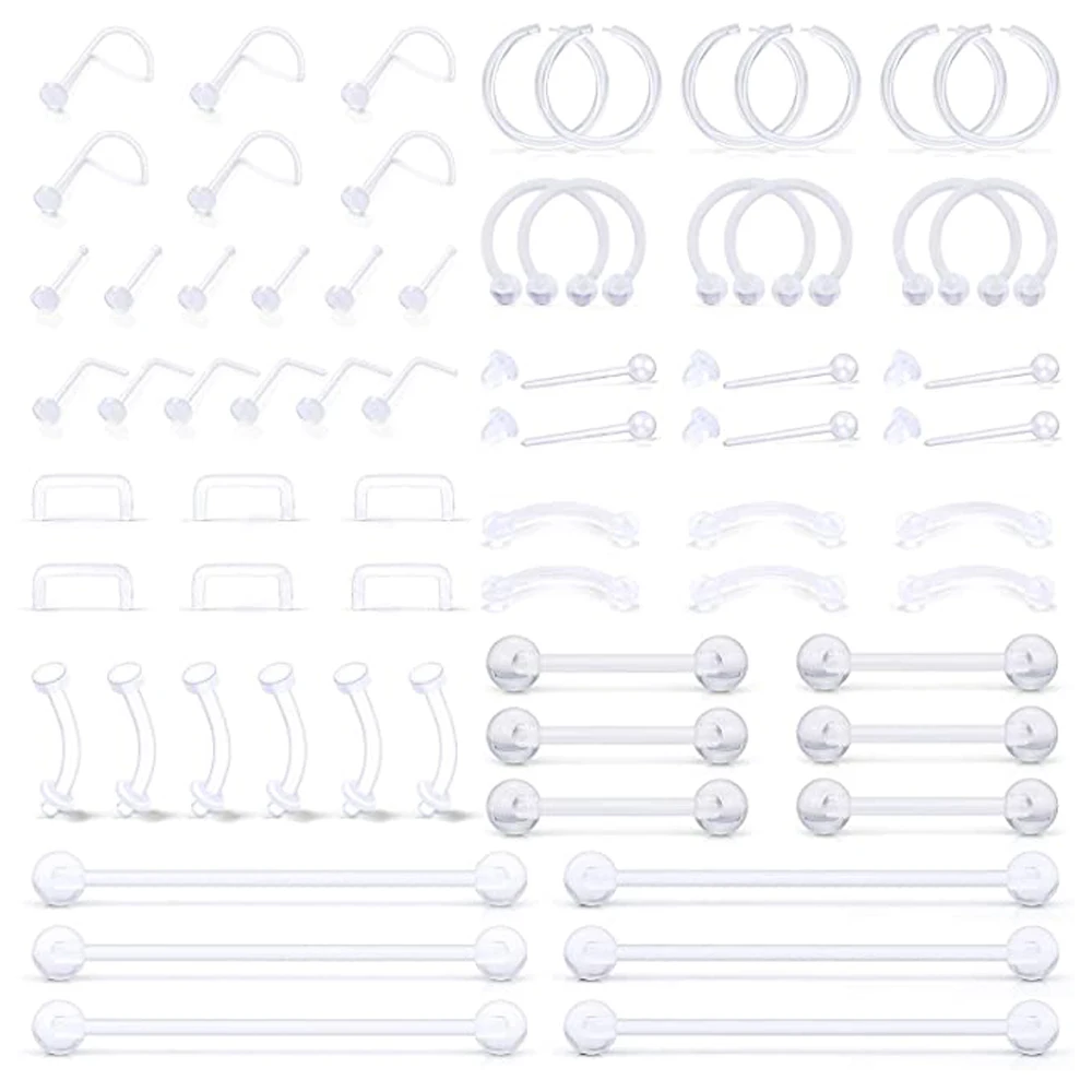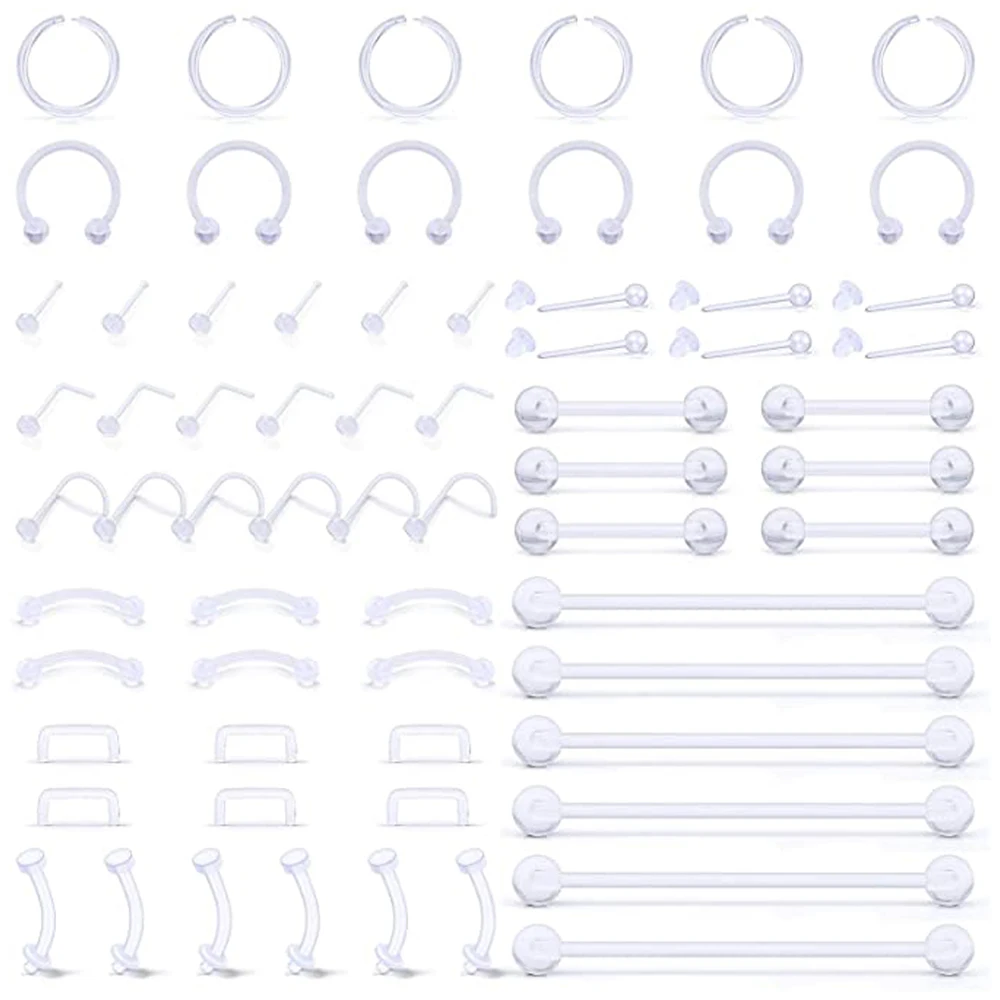 Ясный пирсинг гантеля для носа шпильки гибкий для губ, ушей, носа серьги-кольца украшения для пирсинга языка ниппель кольцо Daith серьги Пластик Промышленная